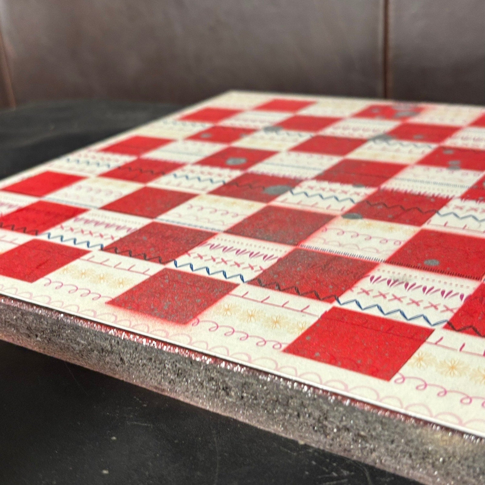 Each board features a layer of beautifully Scrapbook Paper Fused/Glued with particle board to give it a unique pretty pattern. We then paint squares onto the board to make them into fabulous chess boards. Made with a sturdy particle board base and smooth, beveled edges, this board is stunning.