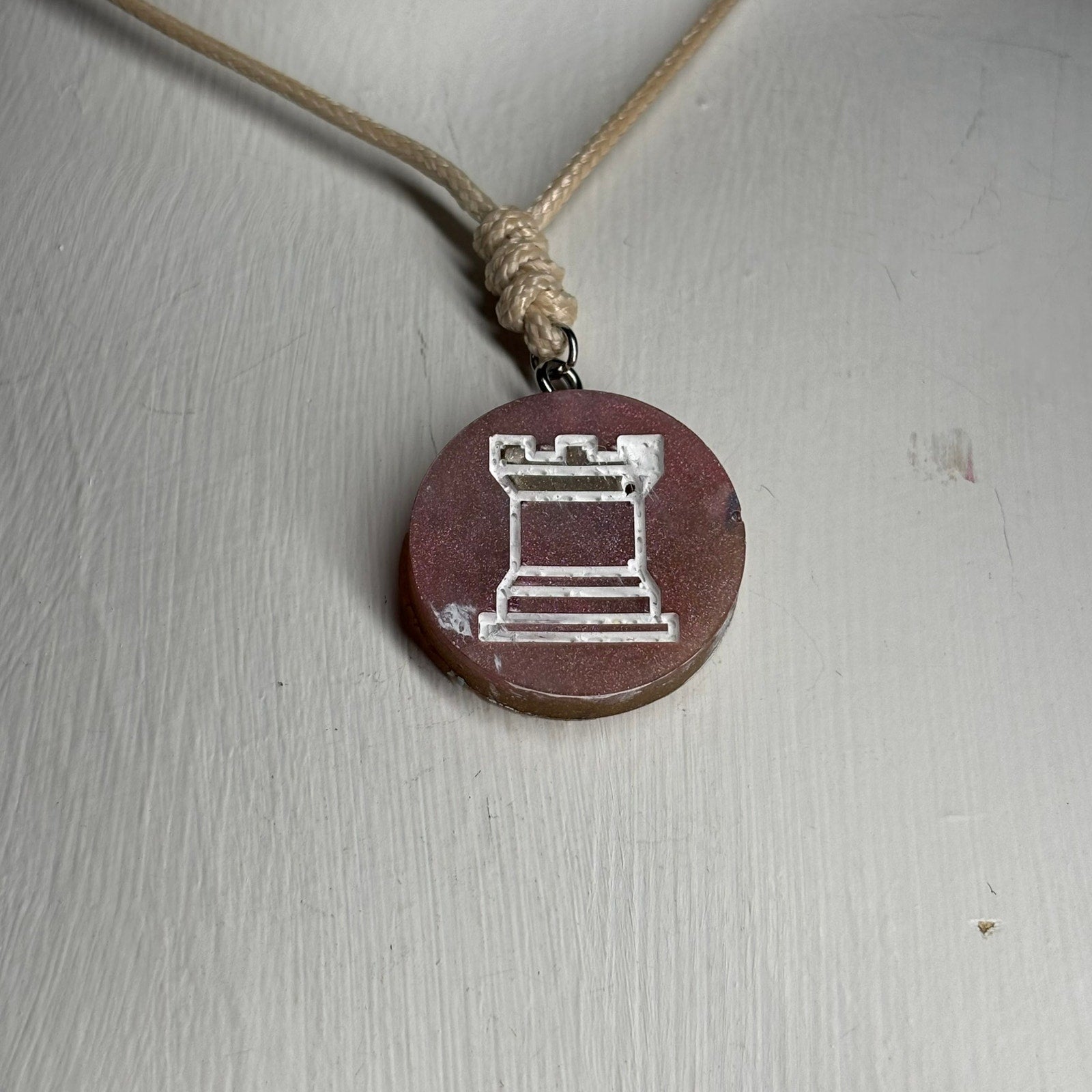 Peach Cream Rook - Handmade Resin Chess Necklace