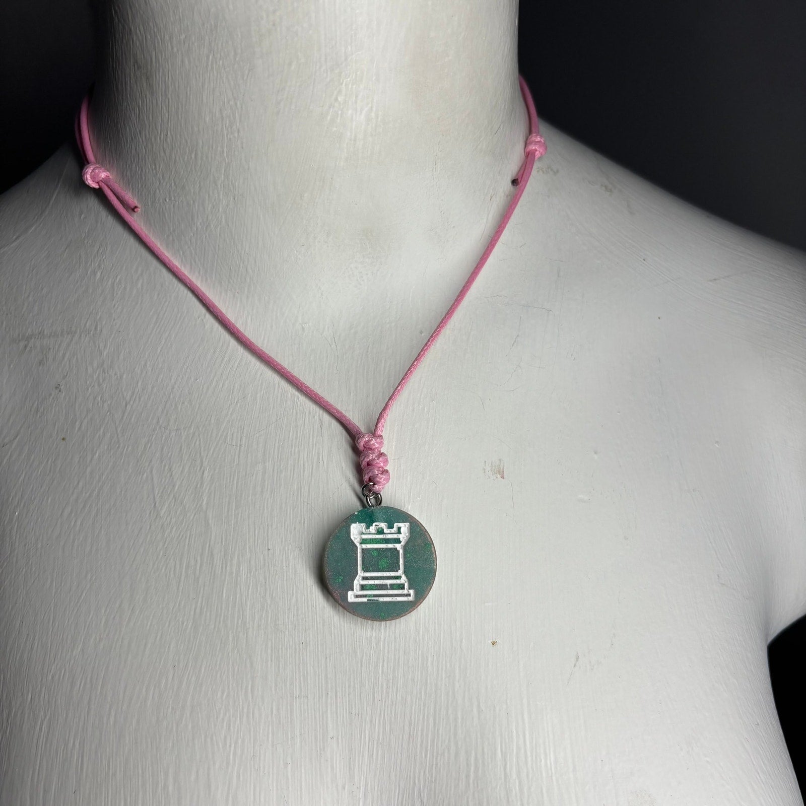 Pearl Green Rook - Handmade Resin Chess Necklace