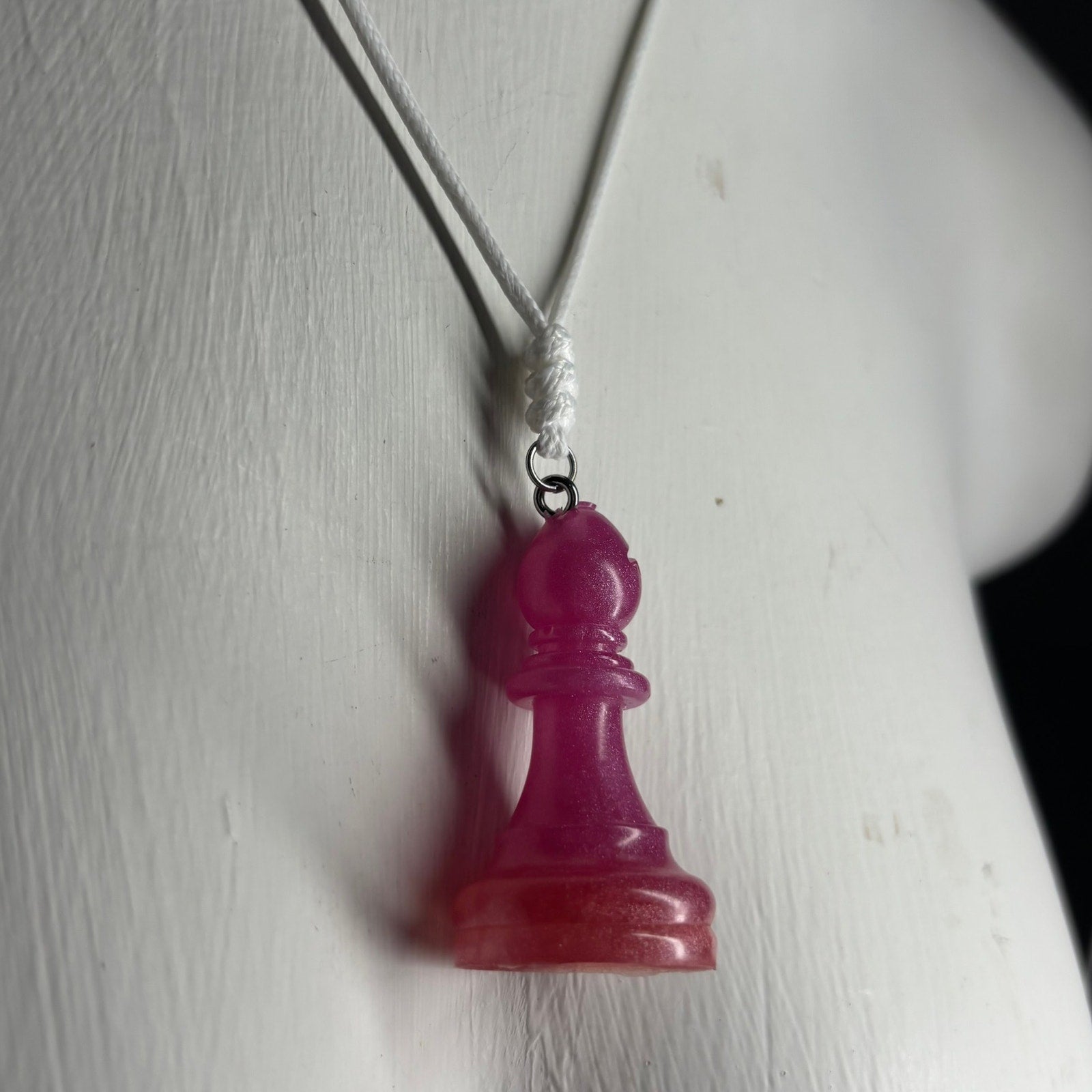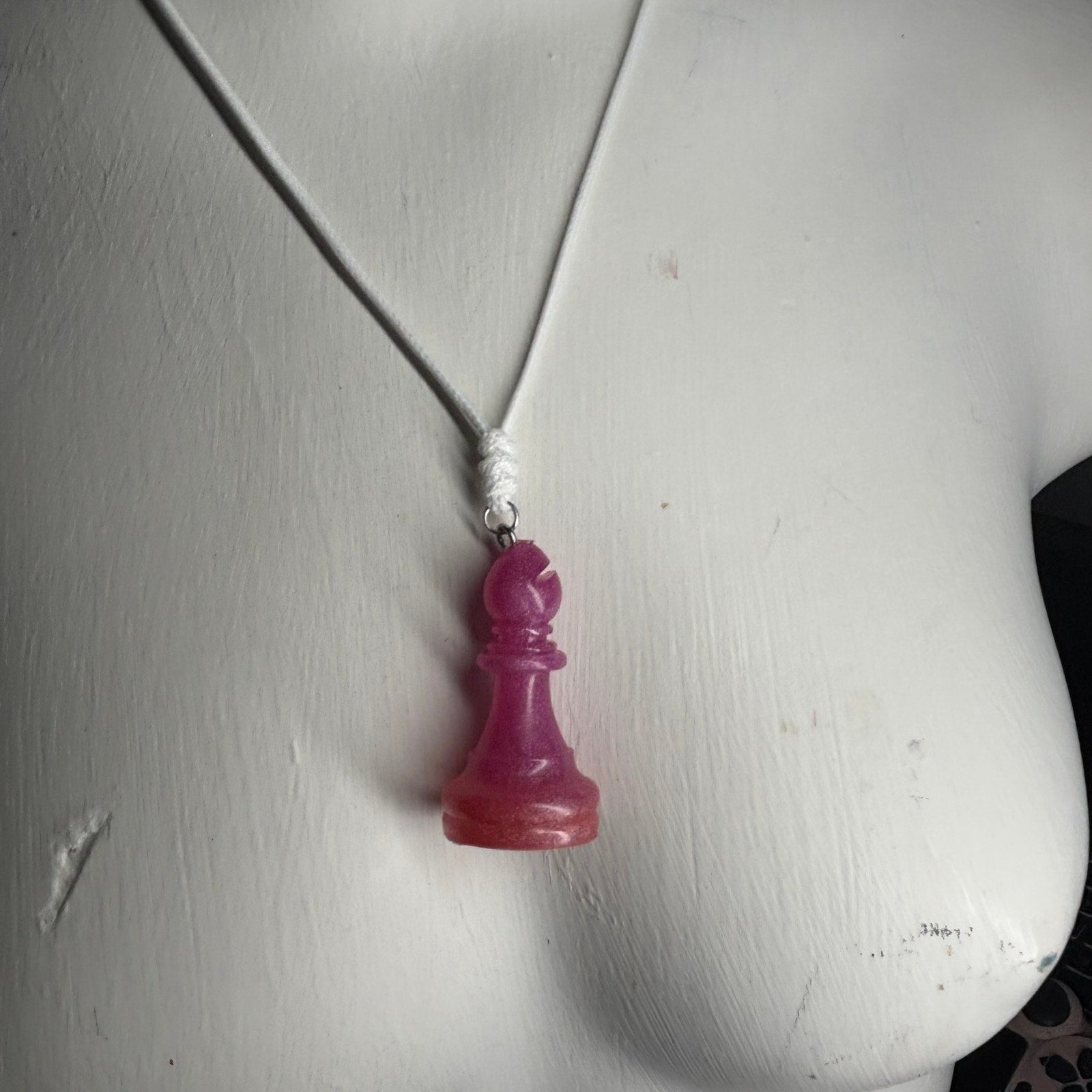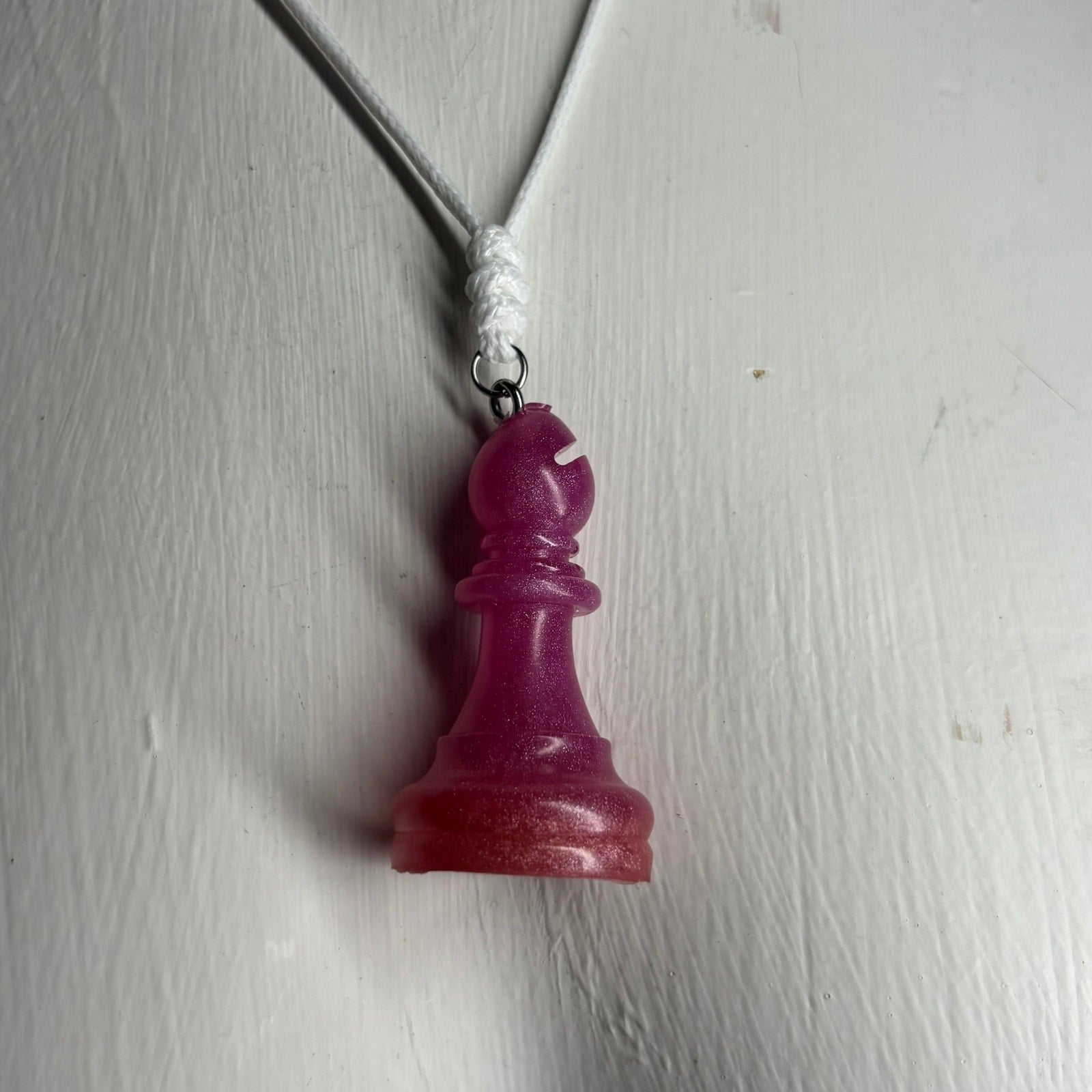 Add a touch of strategy and style to your look with this unique, handcrafted chess pendant necklace! Each necklace features a resin chess piece pendant, lovingly handmade to ensure quality and individuality.