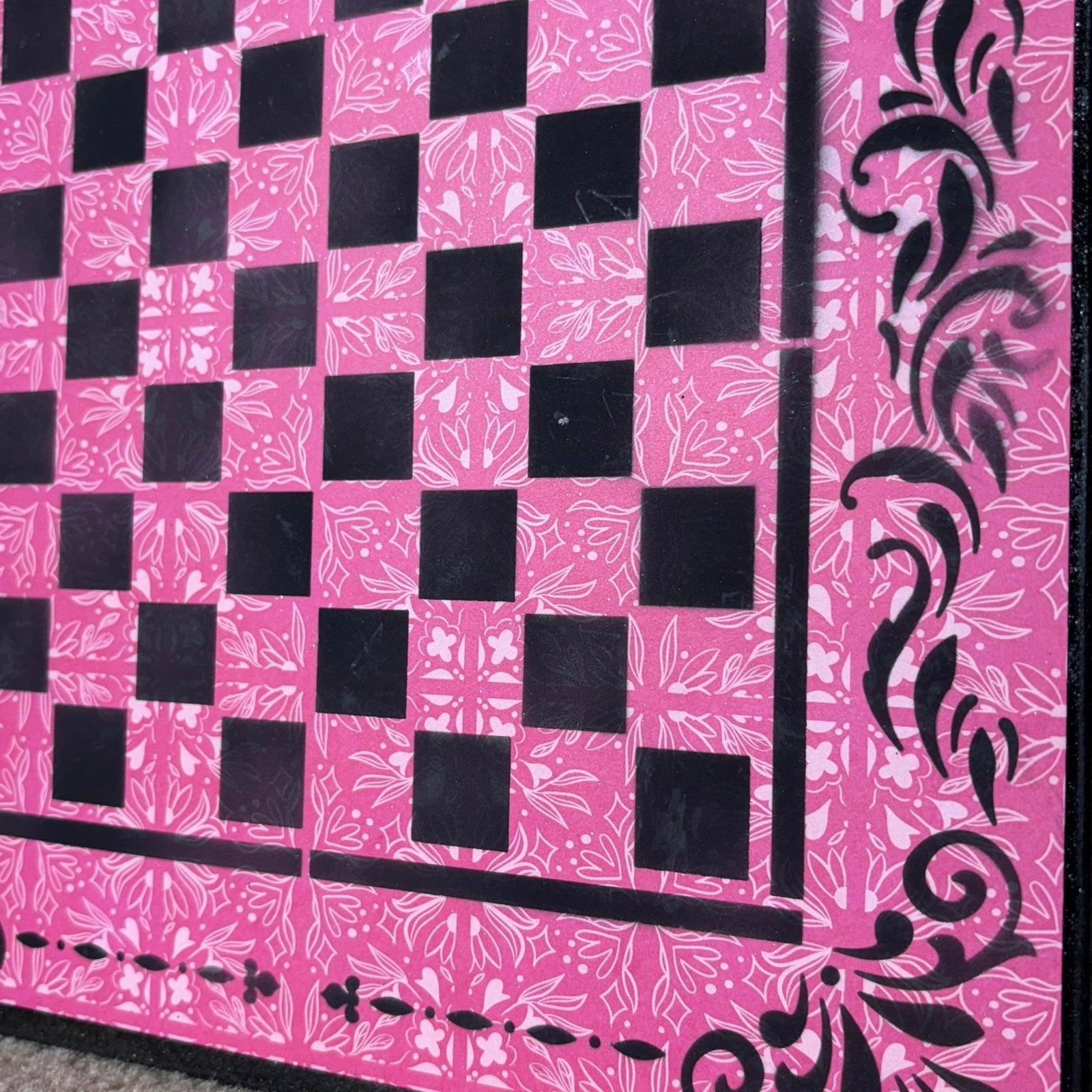 Each board features a layer of beautifully Scrapbook Paper Fused/Glued with particle board to give it a unique pretty pattern. We then paint squares onto the board to make them into fabulous chess boards. Made with a sturdy particle board base and smooth, beveled edges, this board is stunning.
