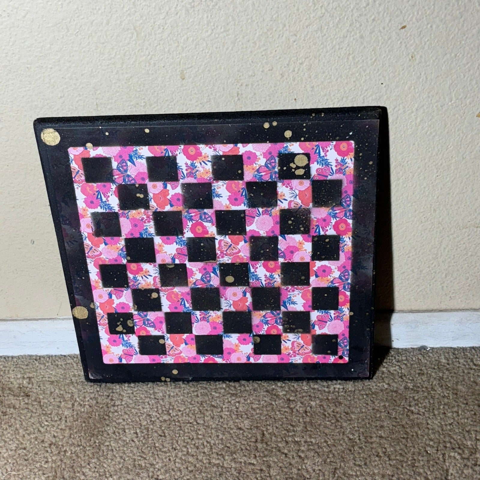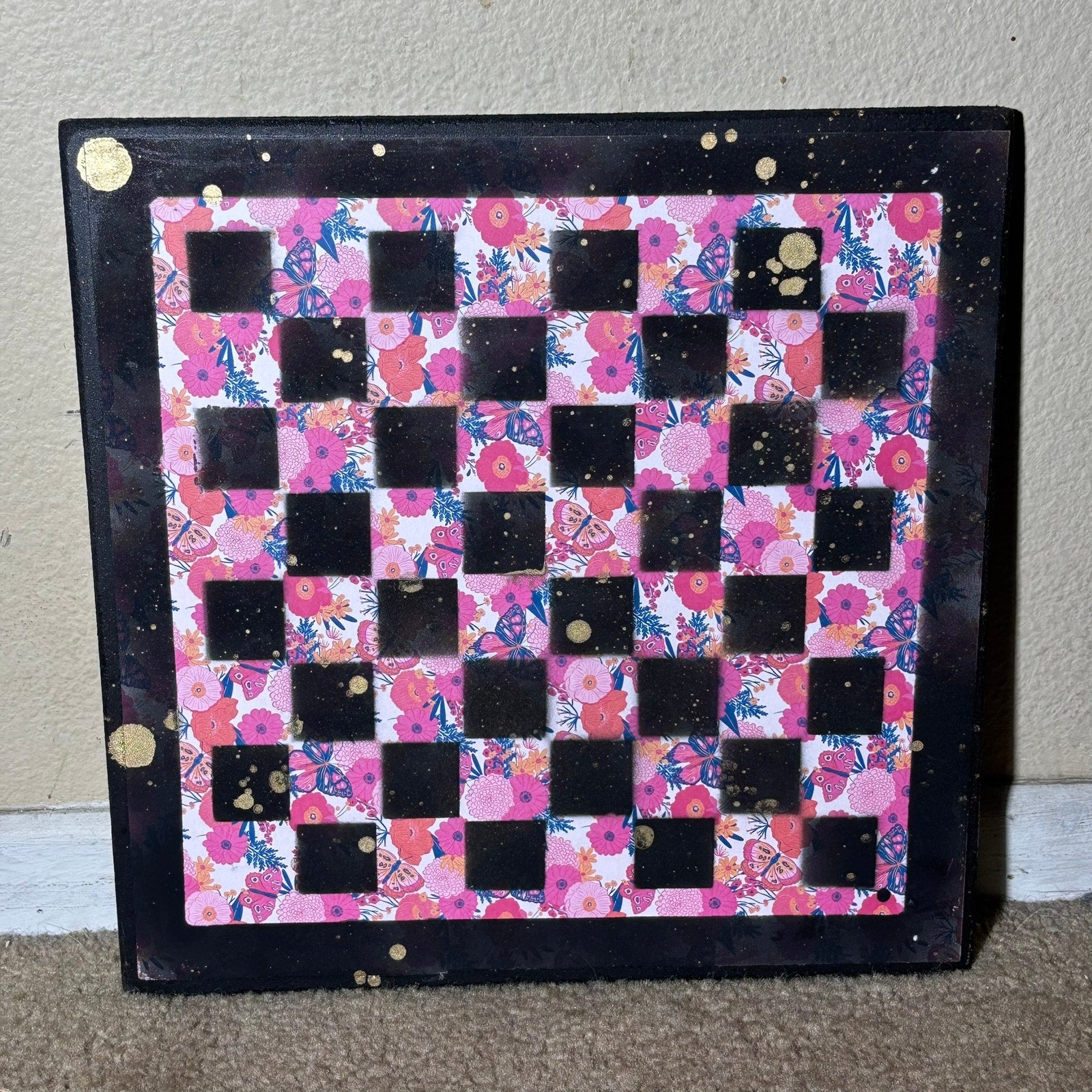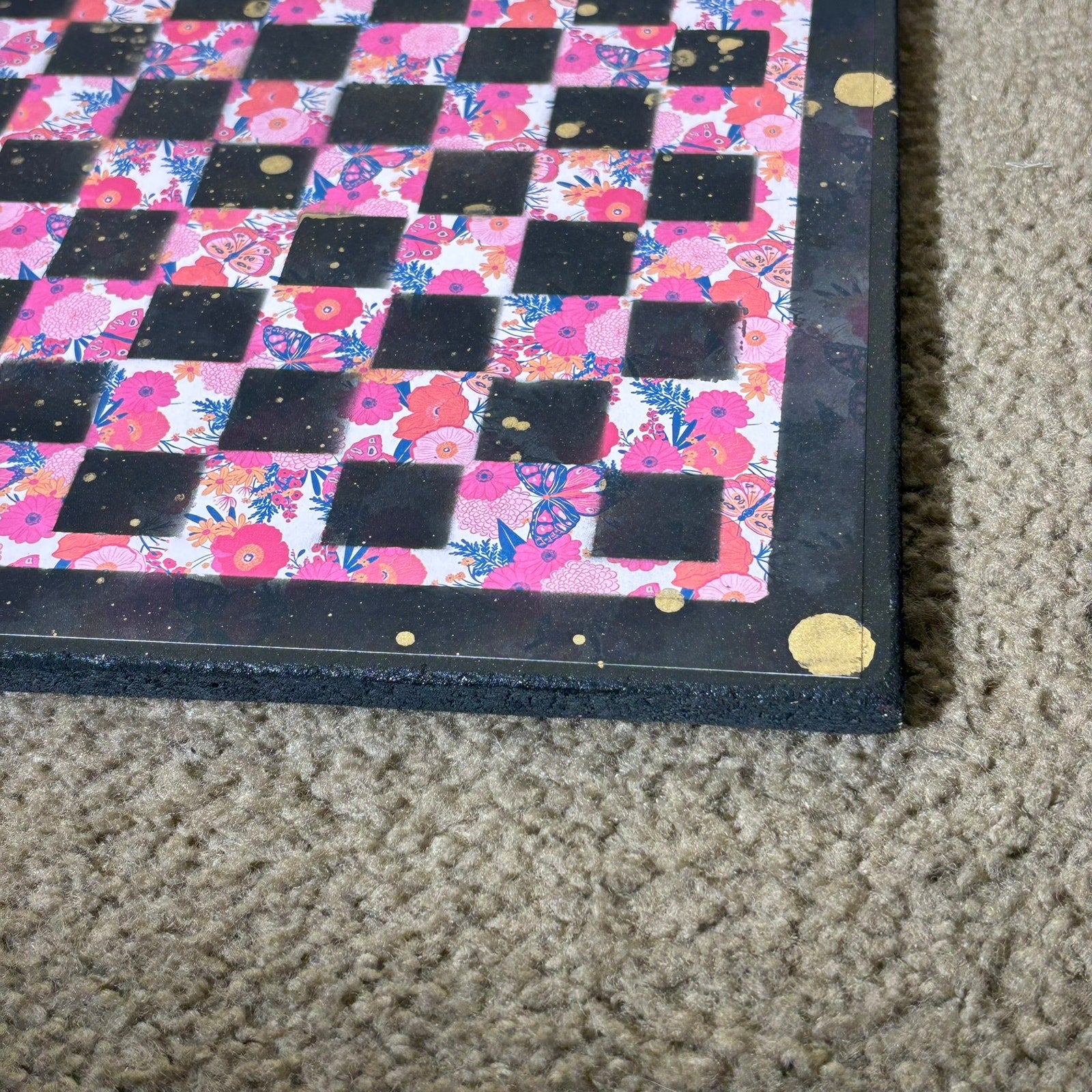 Each board features a layer of beautifully Scrapbook Paper Fused/Glued with particle board to give it a unique pretty pattern. We then paint squares onto the board to make them into fabulous chess boards. Made with a sturdy particle board base and smooth, beveled edges, this board is stunning.