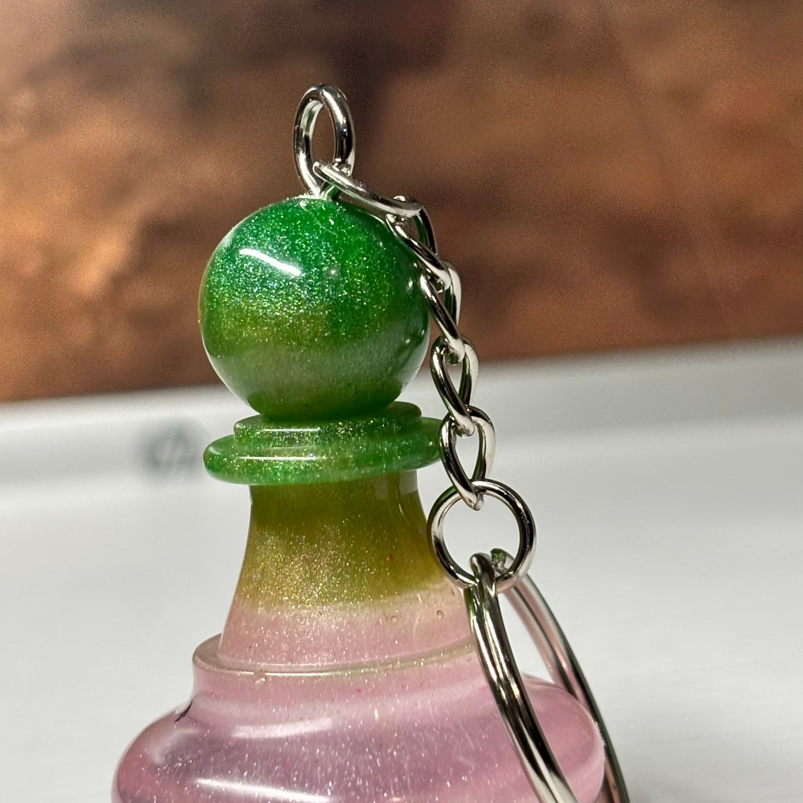 Each keychain is carefully crafted with high-quality resin, resulting in a durable and eye-catching piece. The design is completely unique, so you can be sure that no one else will have the exact same keychain.