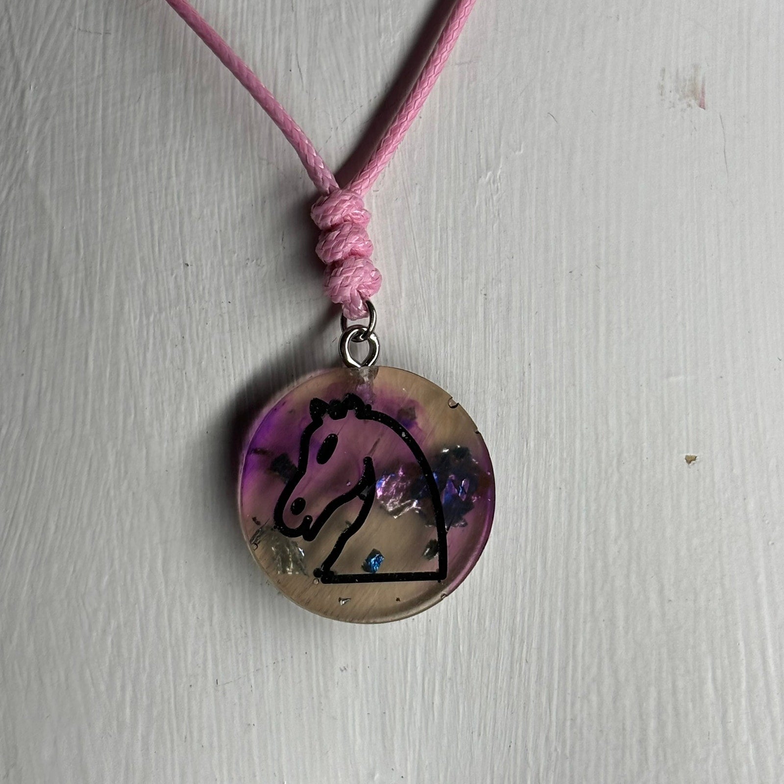 Pink Burst Knight - Handmade Resin Chess Necklace