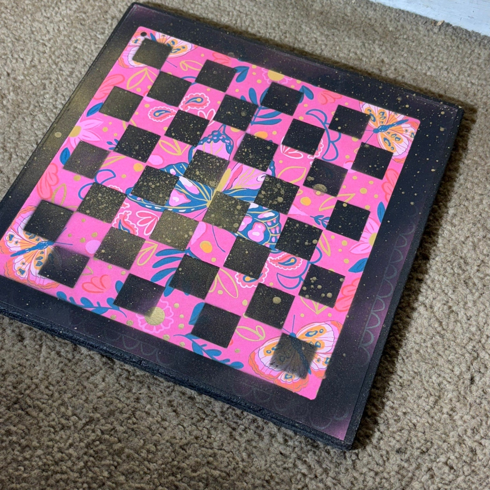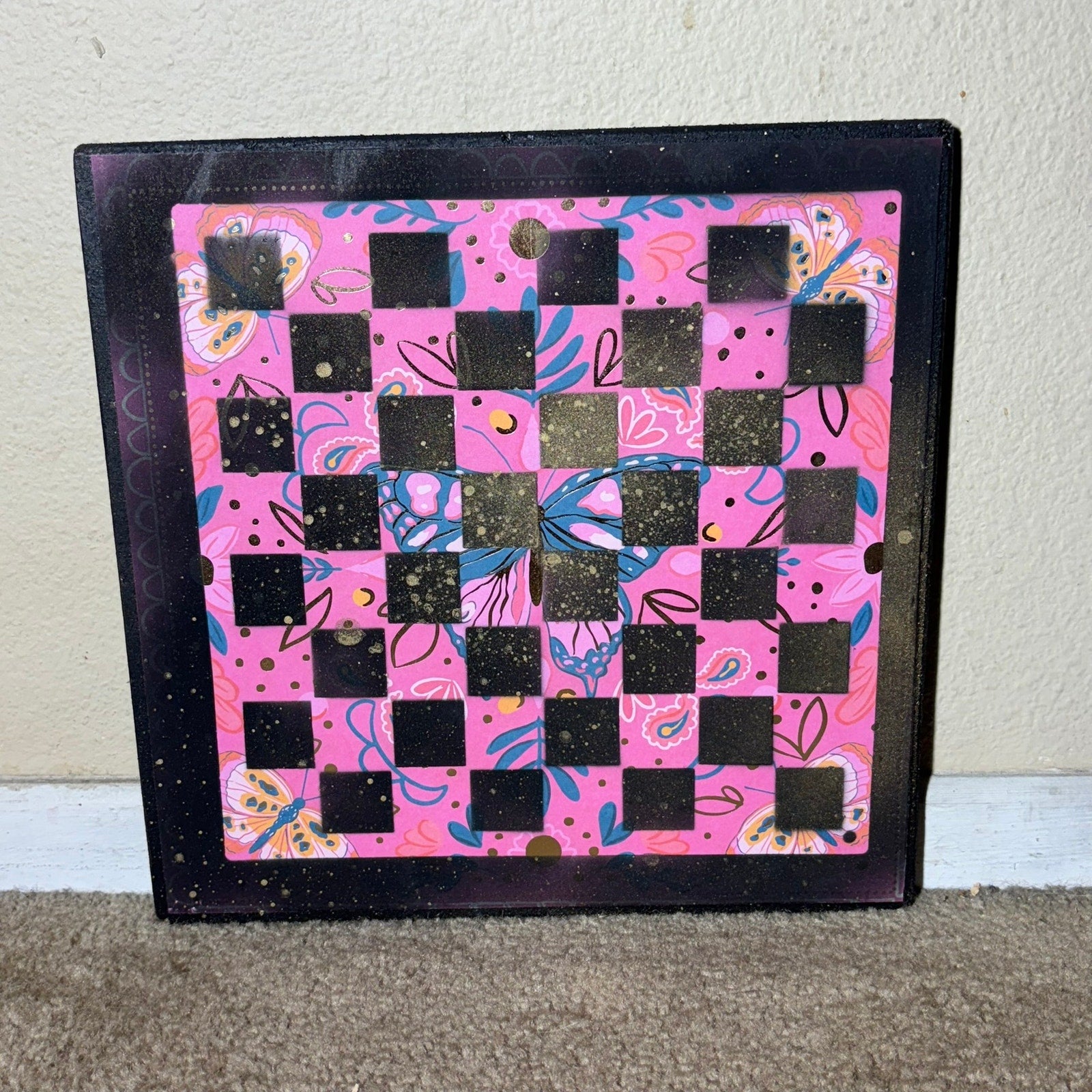 Pink Butterfly- Scrapbook Chess Board