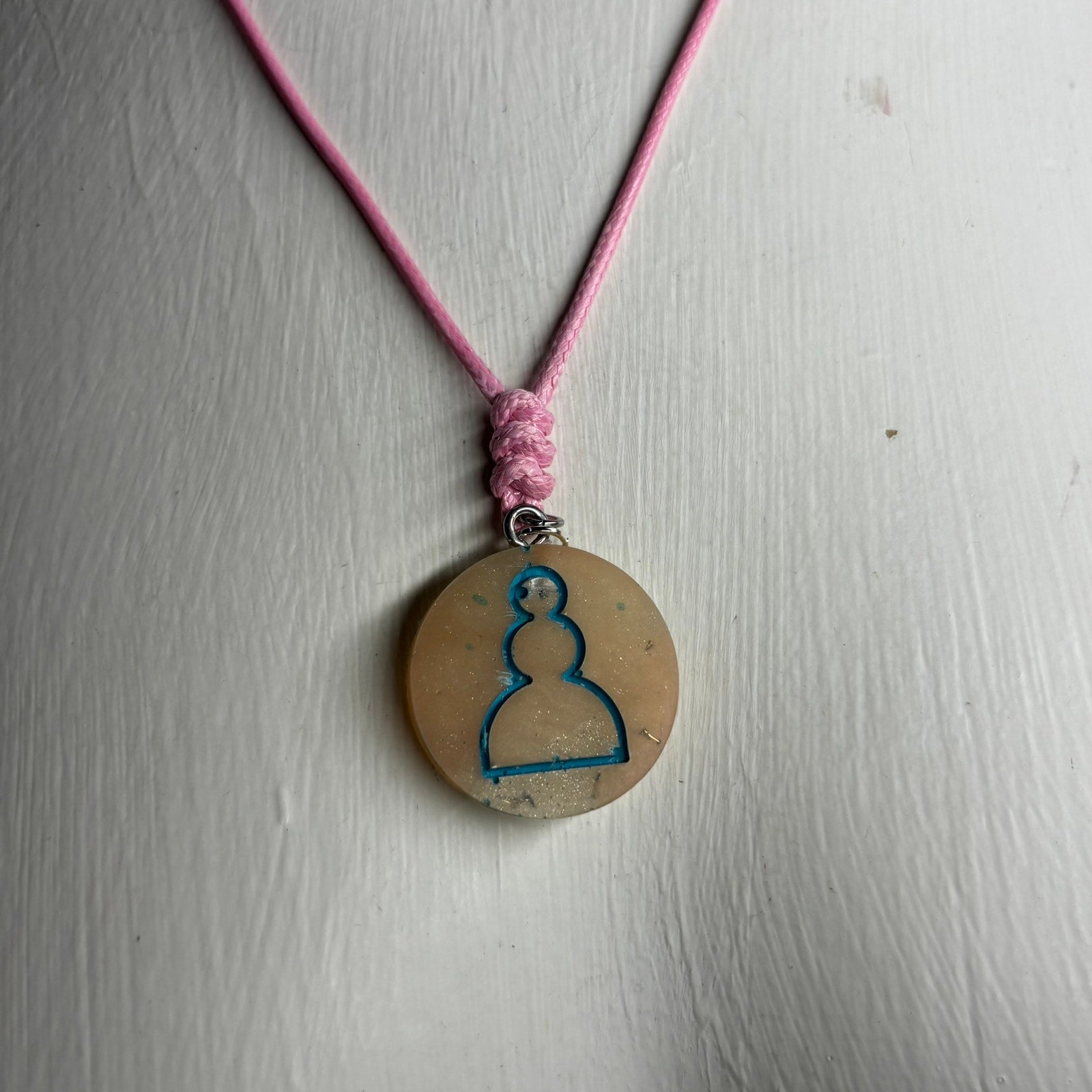 Pink Cream Pawn - Handmade Resin Chess Necklace