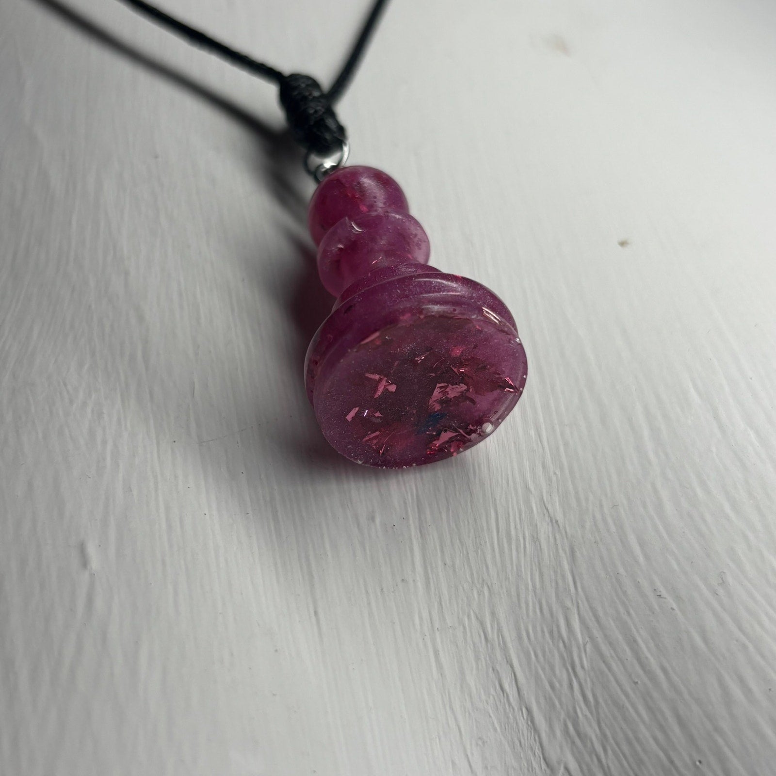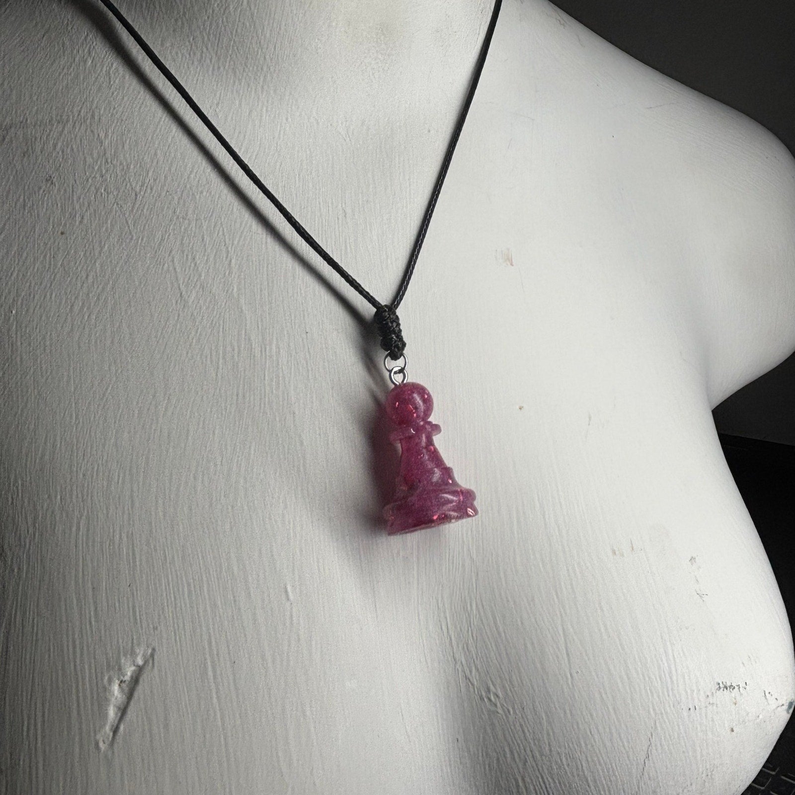 Pink Crystal Pawn- Handmade Resin Chess Necklace
