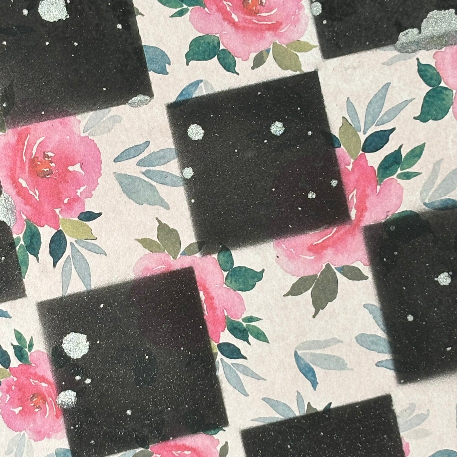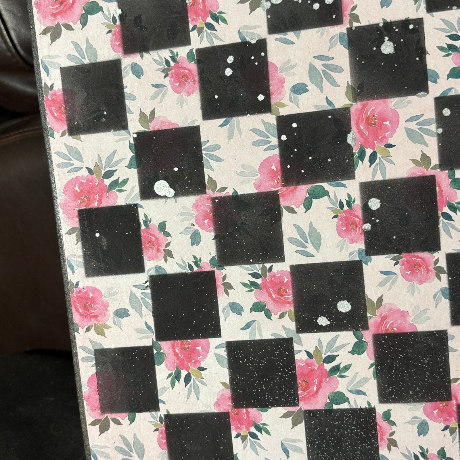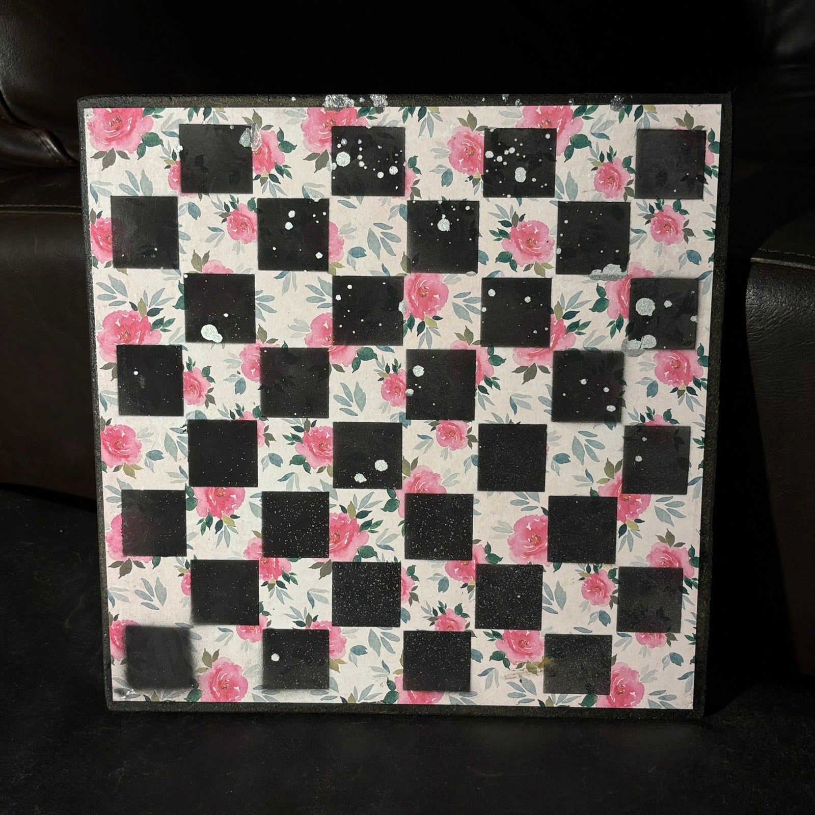 Pink Flowers - Scrapbook Chess Board
