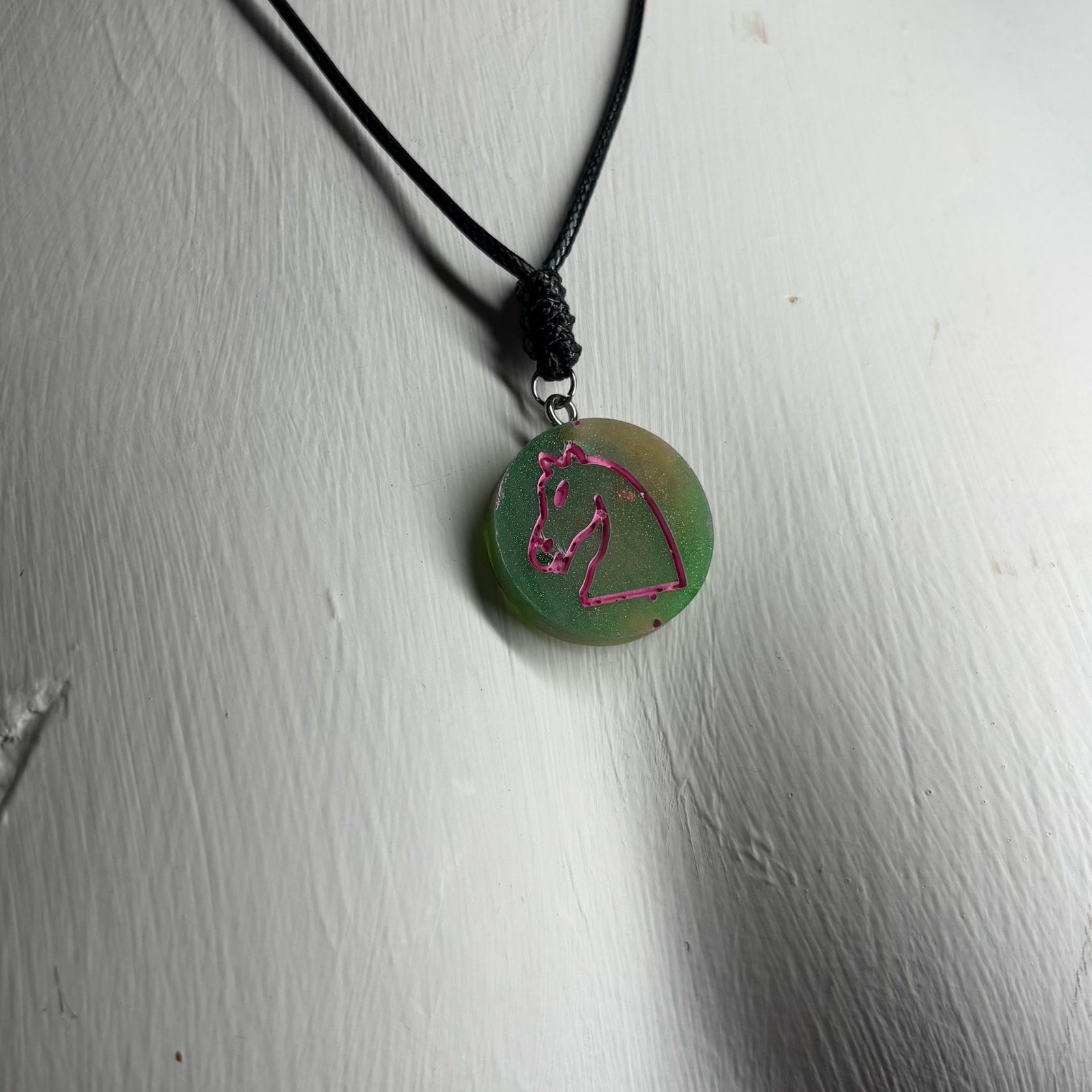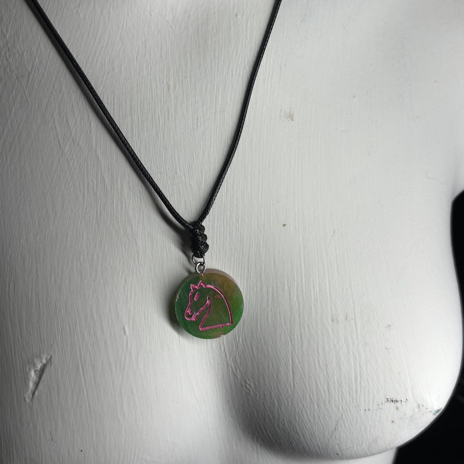 Pink Forest Knight - Handmade Resin Chess Necklace