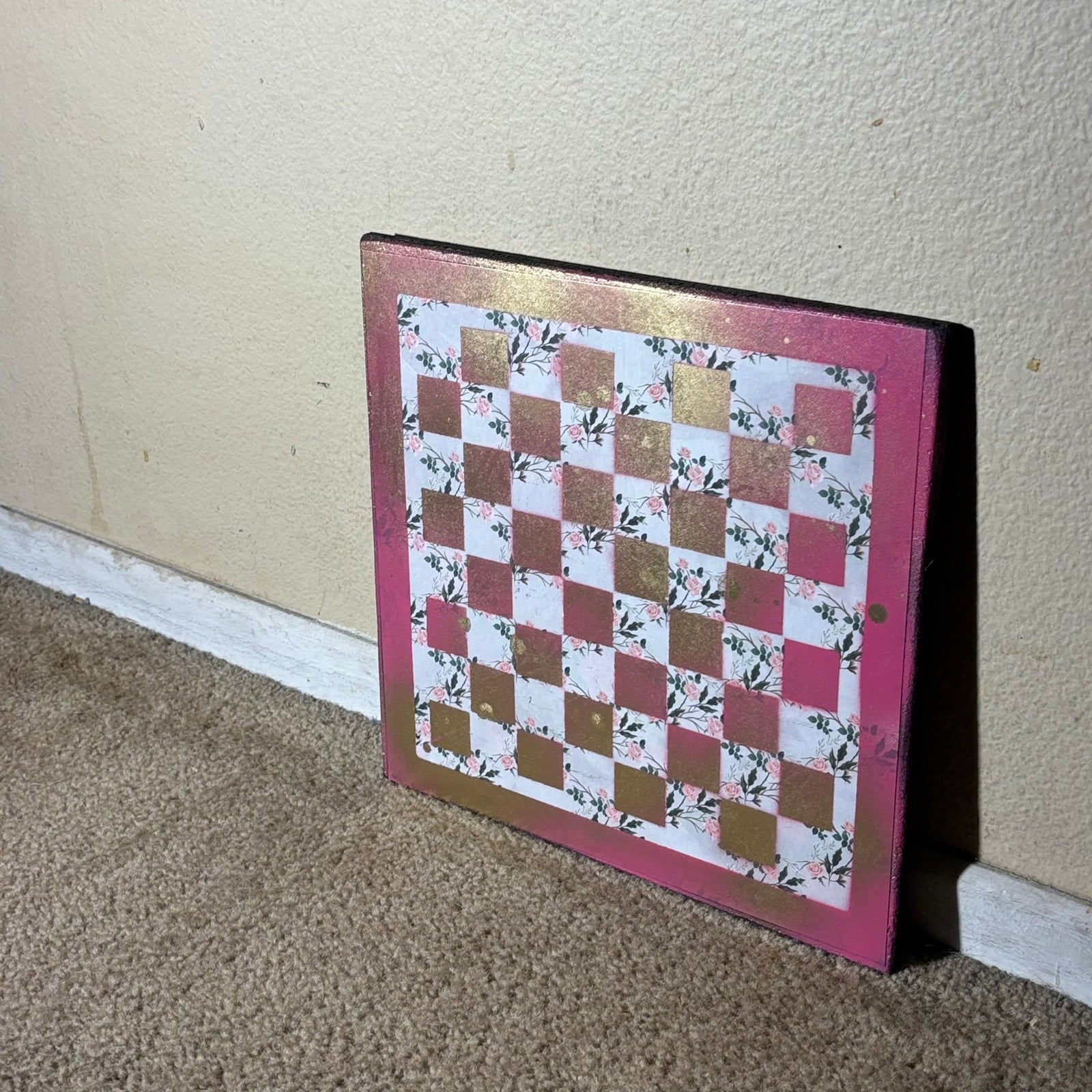 Each board features a layer of beautifully Scrapbook Paper Fused/Glued with particle board to give it a unique pretty pattern. We then paint squares onto the board to make them into fabulous chess boards. Made with a sturdy particle board base and smooth, beveled edges, this board is stunning.