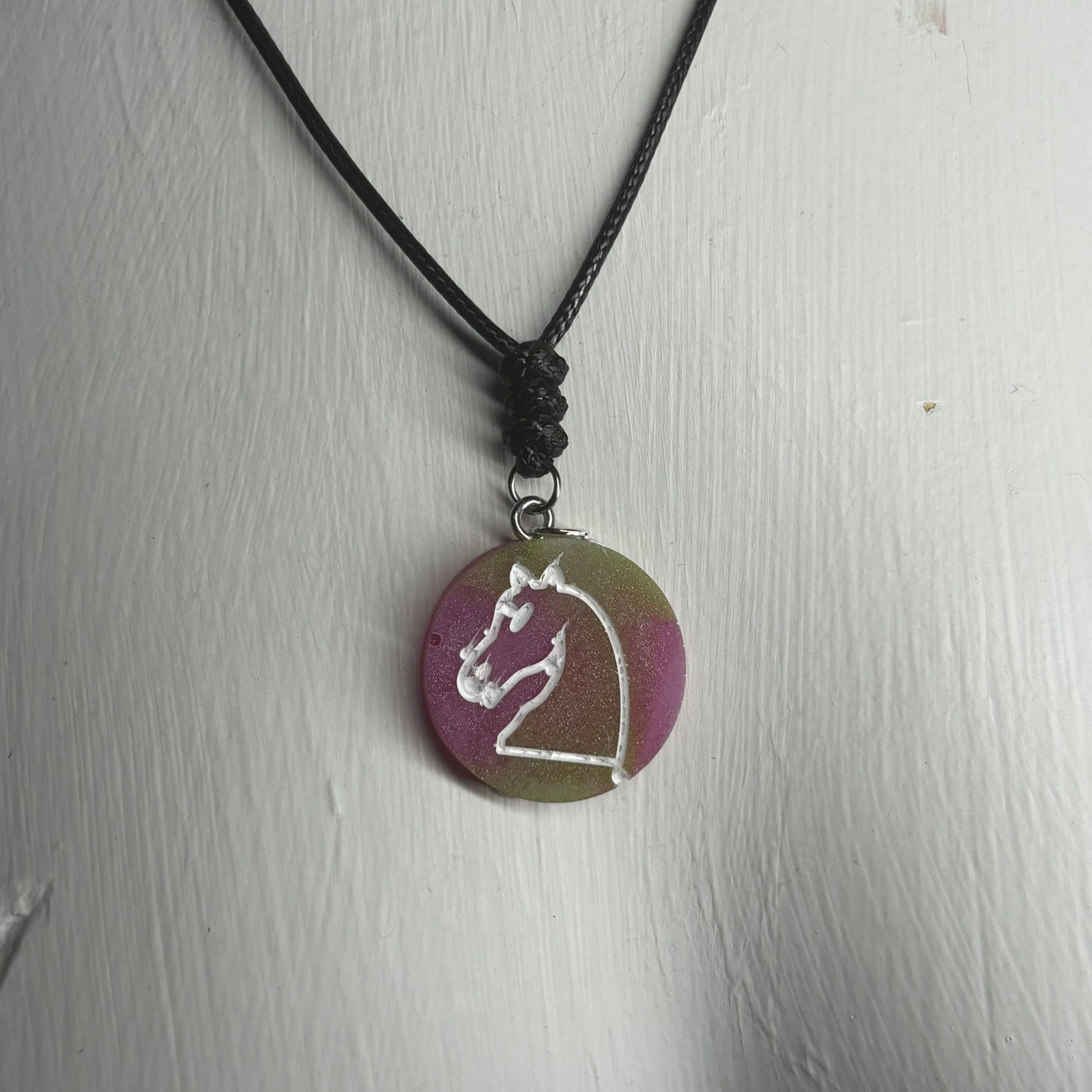 Pink & Green Knight - Handmade Resin Chess Necklace