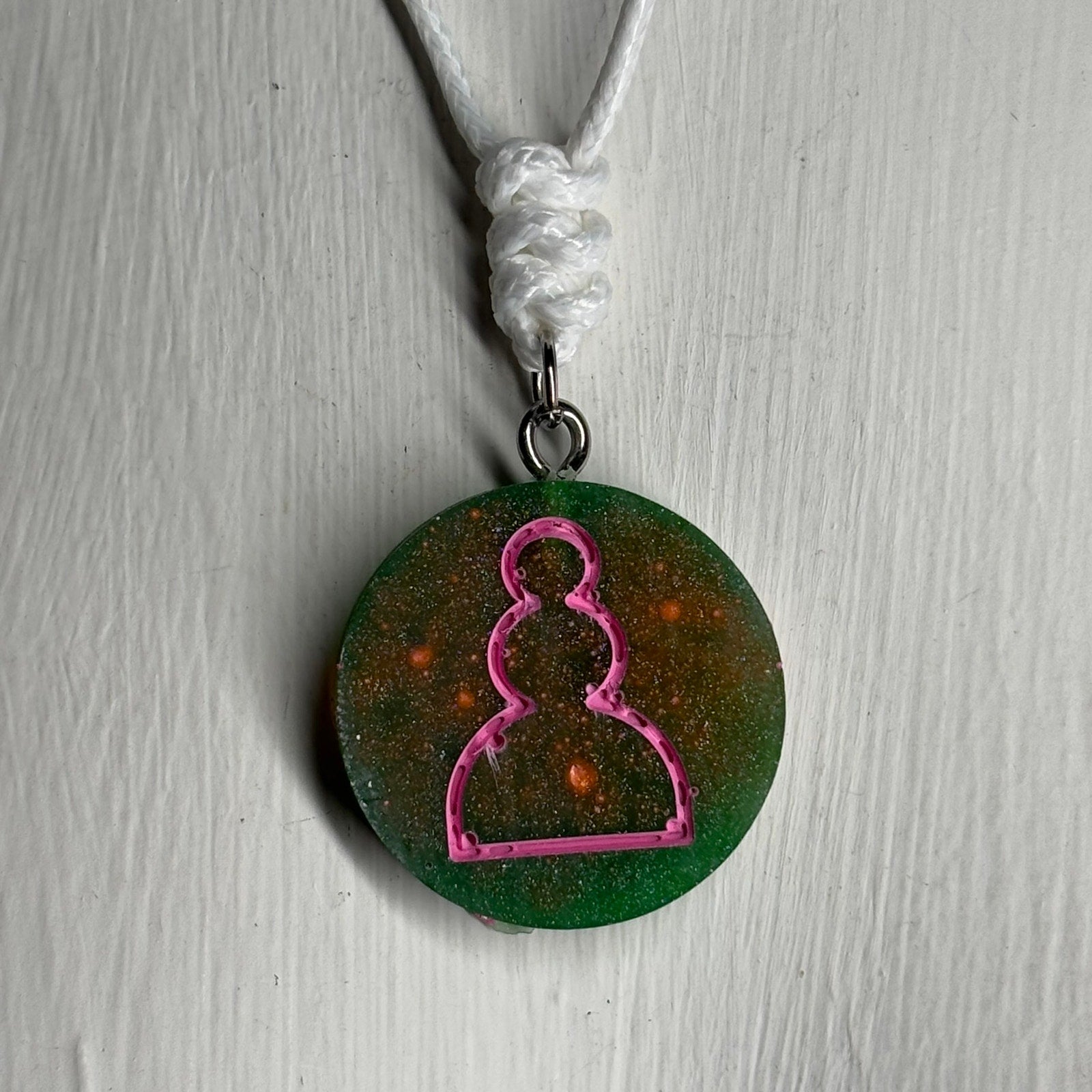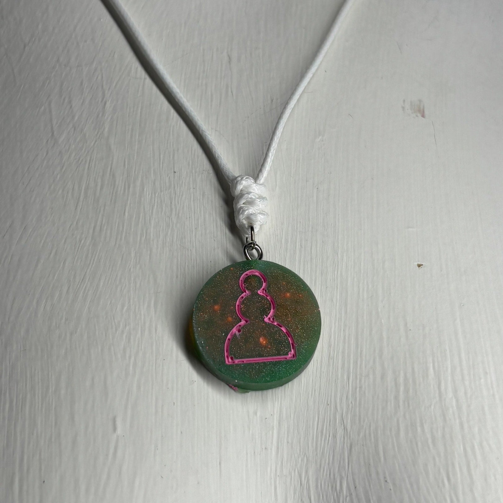 Pink Mint Green - Handmade Resin Chess Necklace - Flat Edition