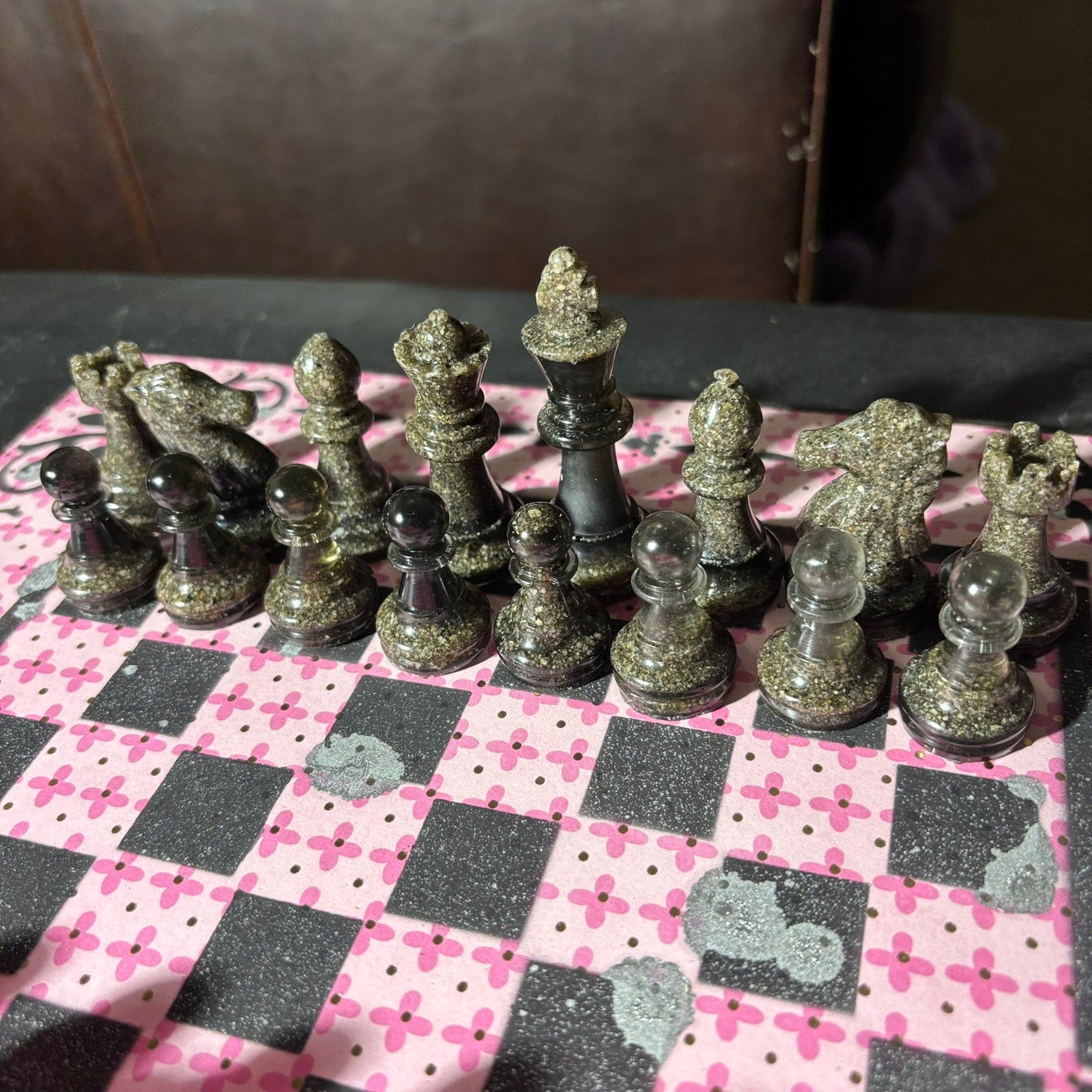 *** PLEASE READ: The resin pieces that have clear transparent parts will slowly turn royal amber as time goes on (Clear see through resin turn amber with time). Most of the sets are solid or colored so there is no need to expect a change at all, but some have clear transparent bottoms that will turn amber. I write this because some of our chess sets may not sell for a year or two and the photos are taken when the item is listed online. Meaning the photos will have slight difference. Rest assured, the amber is beautiful and vintage!