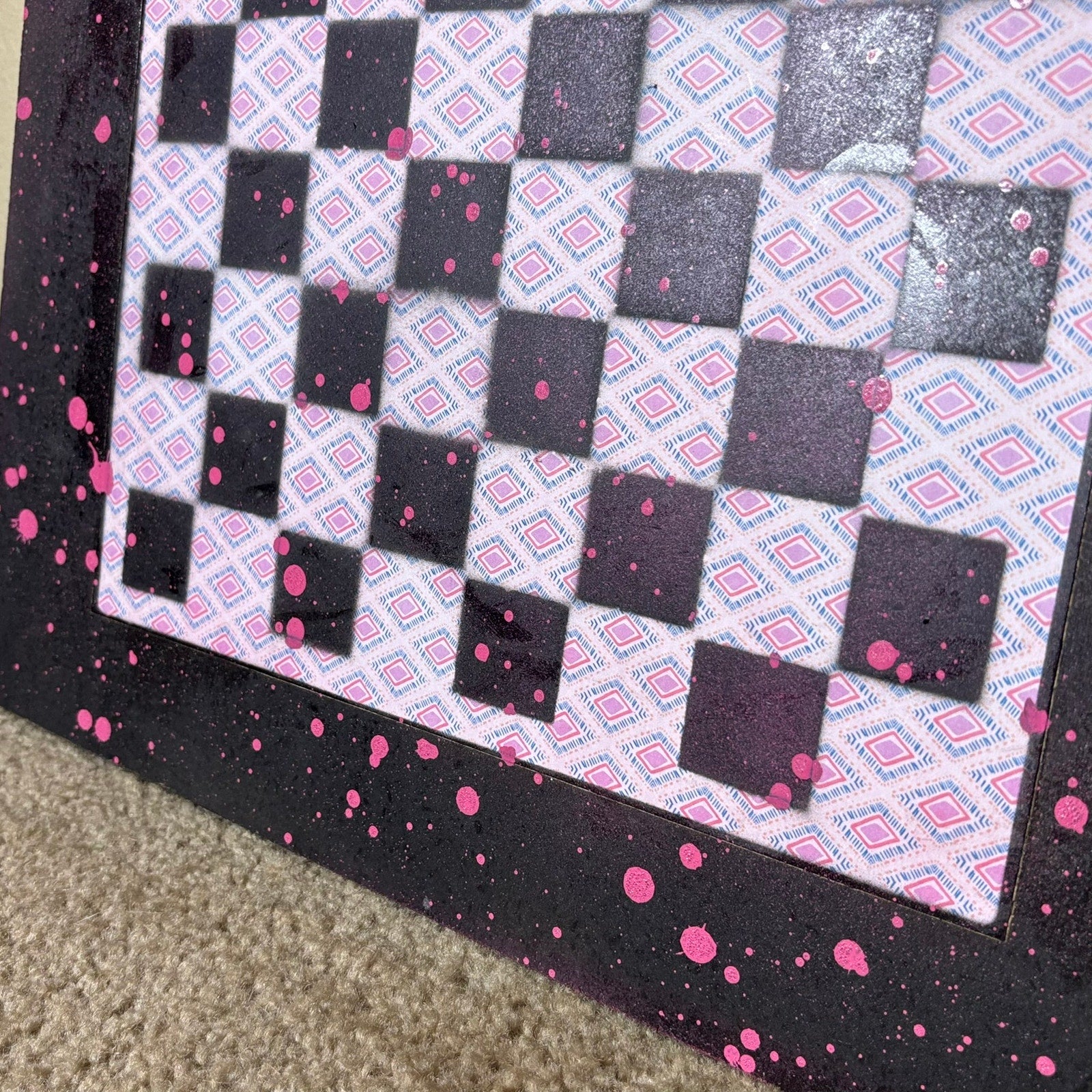 Pink Patterned Drip - Large Scrapbook Chess Board