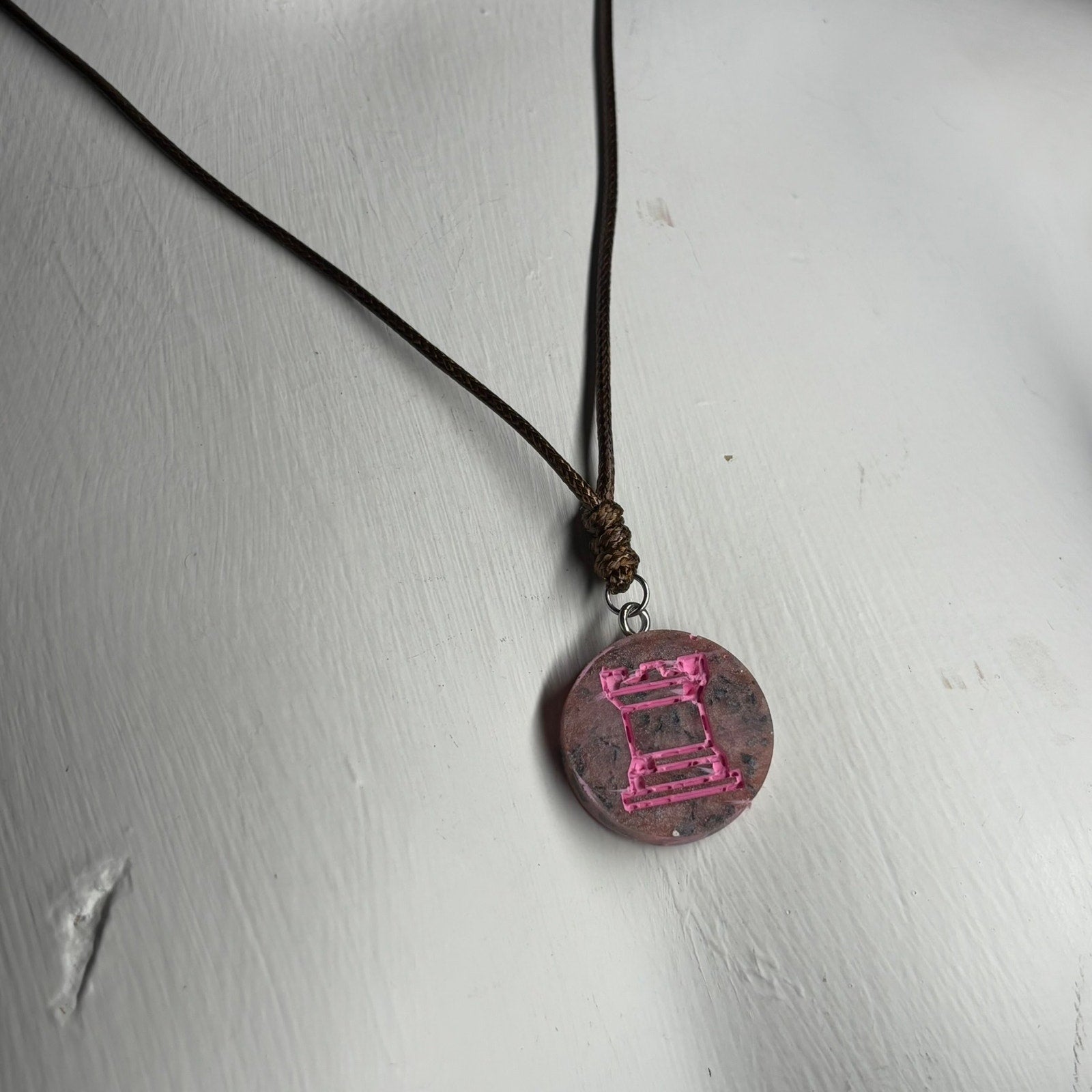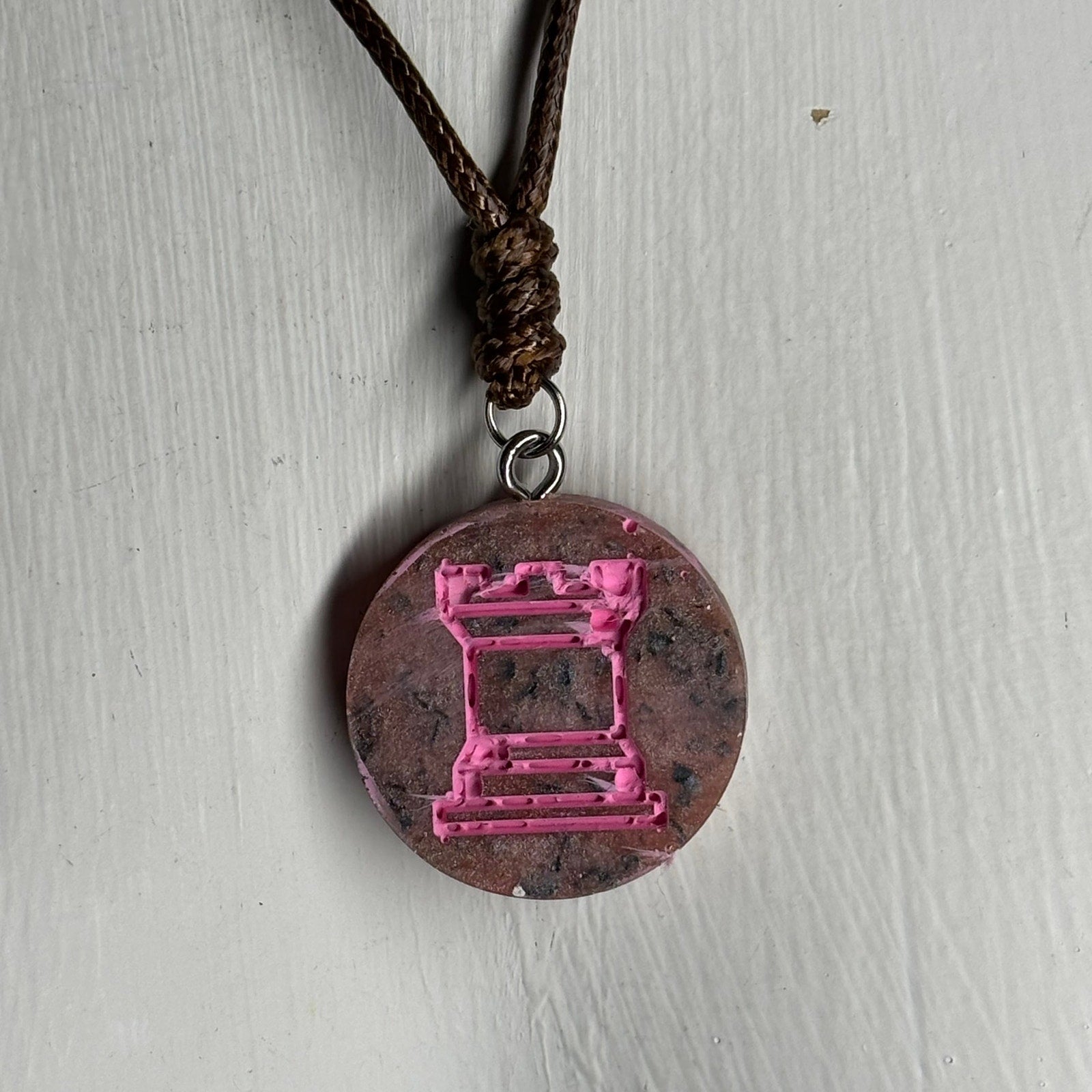 Pink Patterned Rook - Handmade Resin Chess Necklace