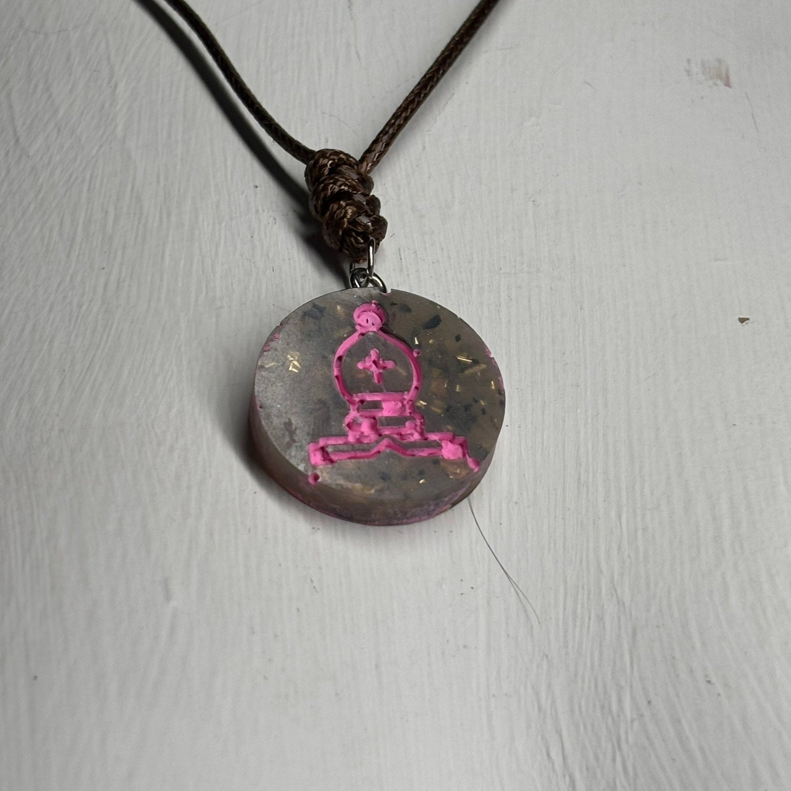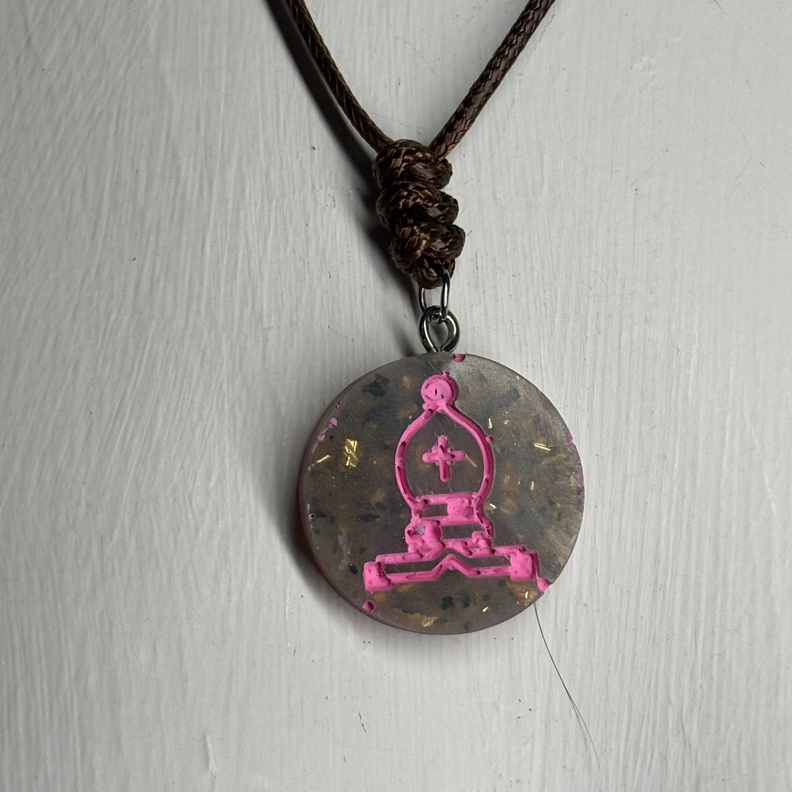 Pink Print Bishop - Handmade Resin Chess Necklace
