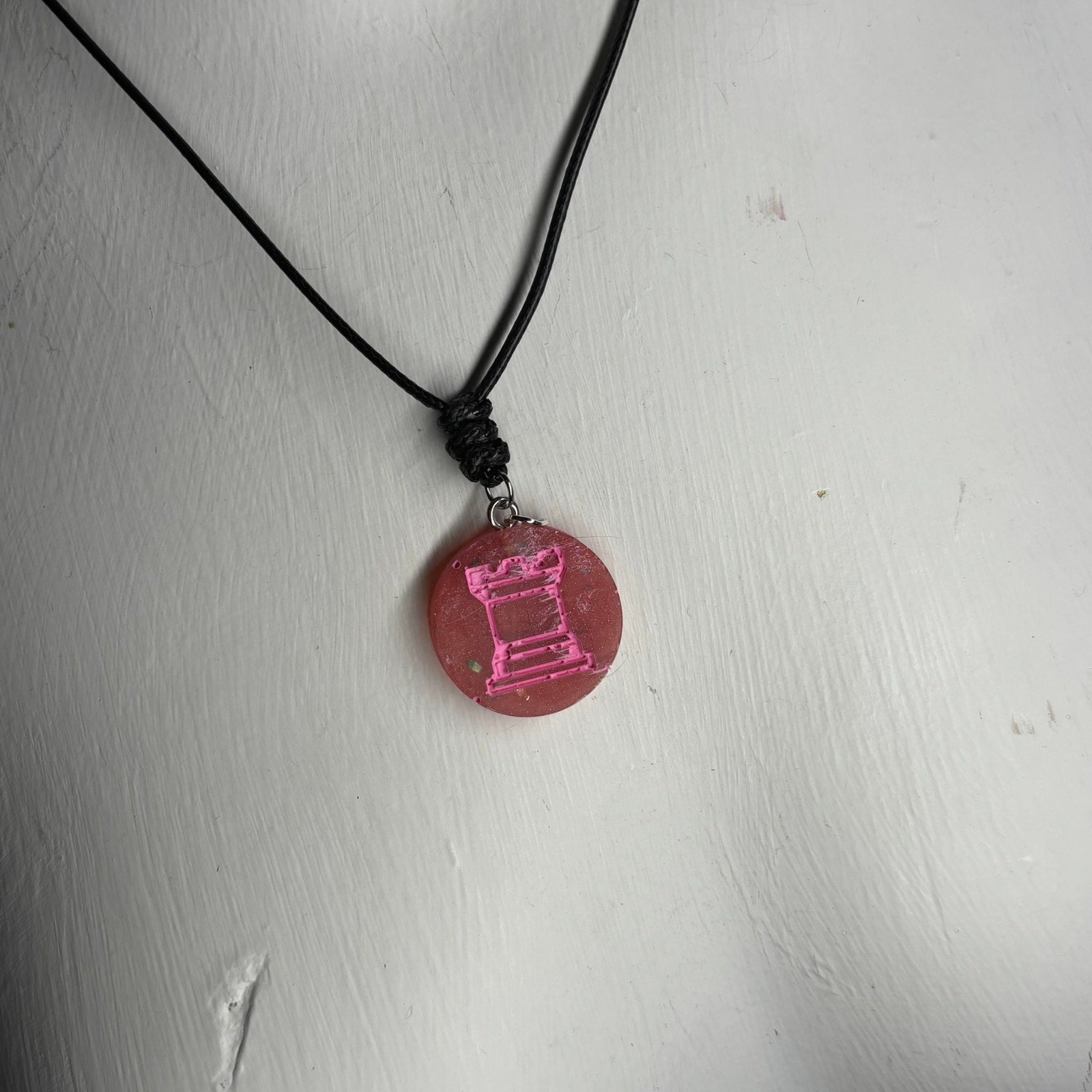 Pink Print Rook - Handmade Resin Chess Necklace