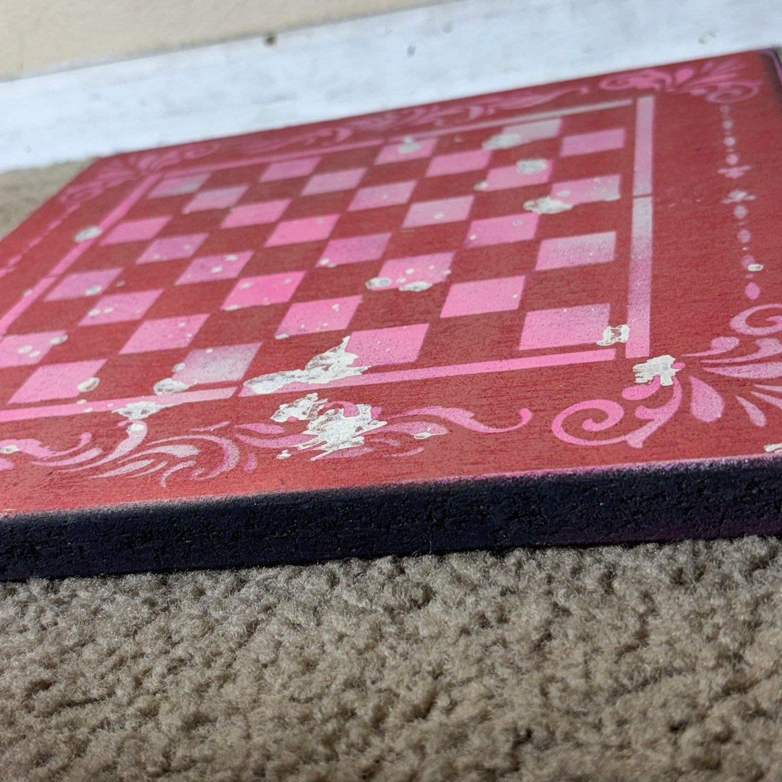 Each board features a beautifully Painted particle board with a unique pretty pattern. We then paint squares onto the board to make them into fabulous chess boards. Made with a sturdy particle board base and smooth, beveled edges, this board is stunning.