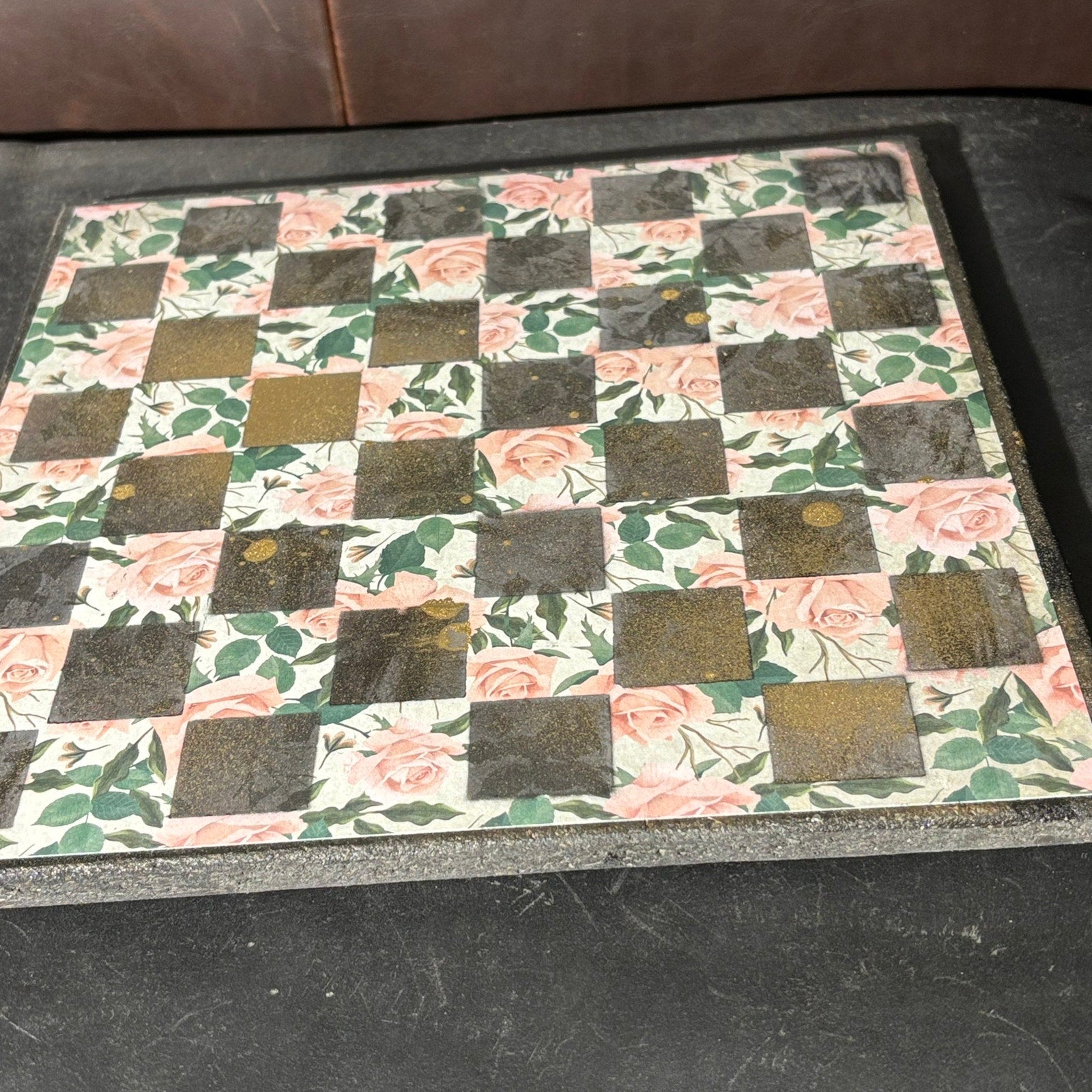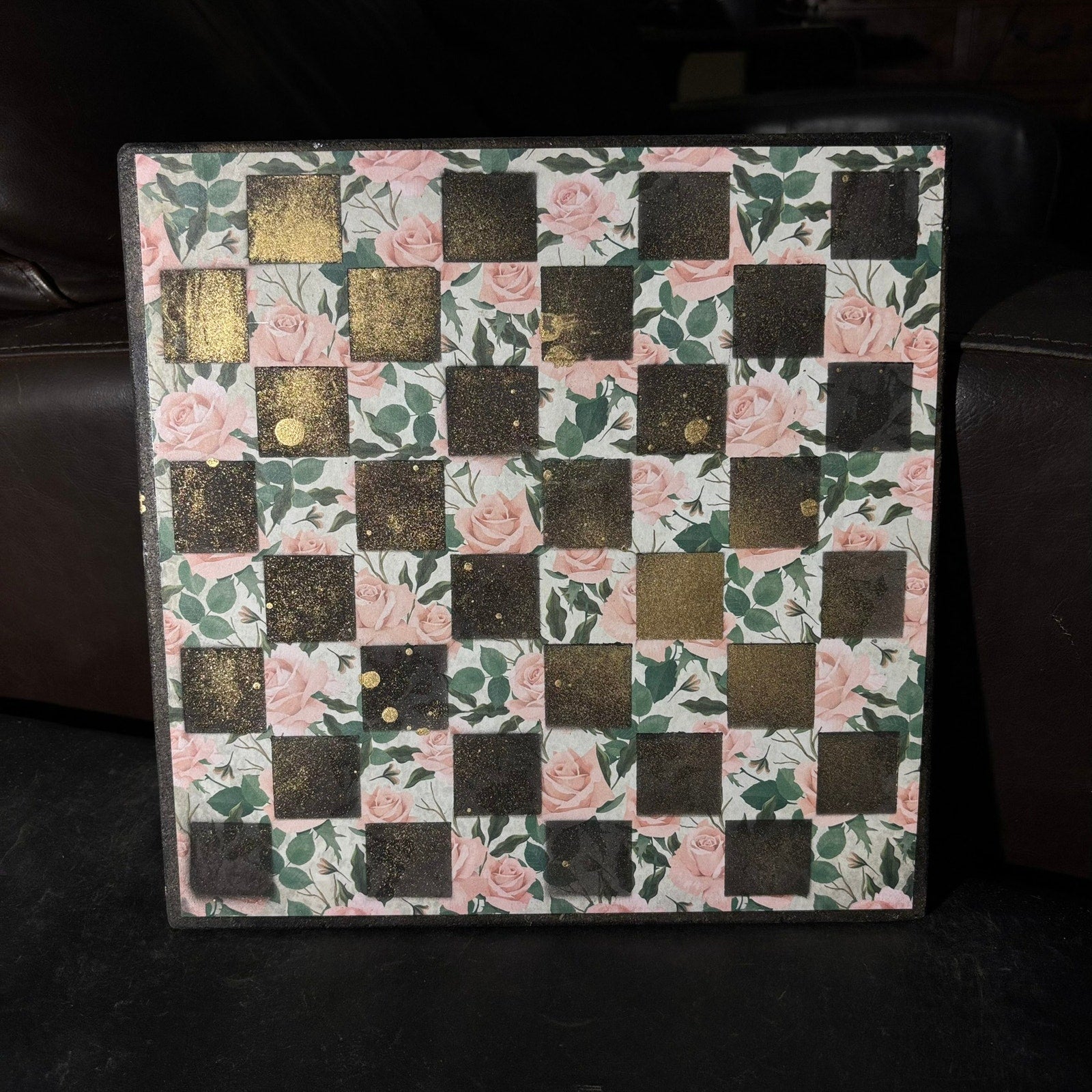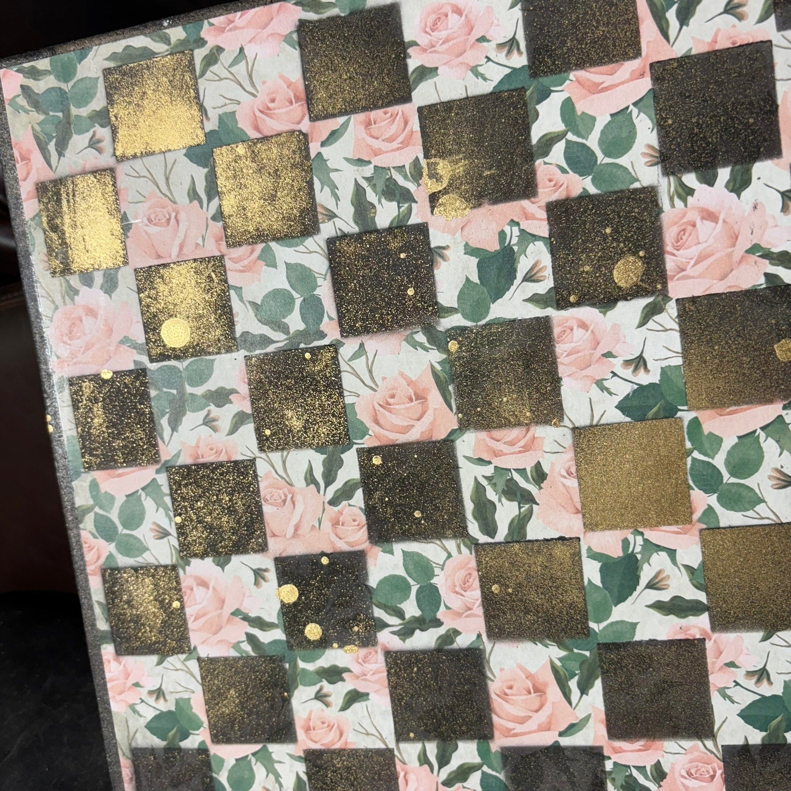 Each board features a layer of beautifully Scrapbook Paper Fused/Glued with particle board to give it a unique pretty pattern. We then paint squares onto the board to make them into fabulous chess boards. Made with a sturdy particle board base and smooth, beveled edges, this board is stunning.