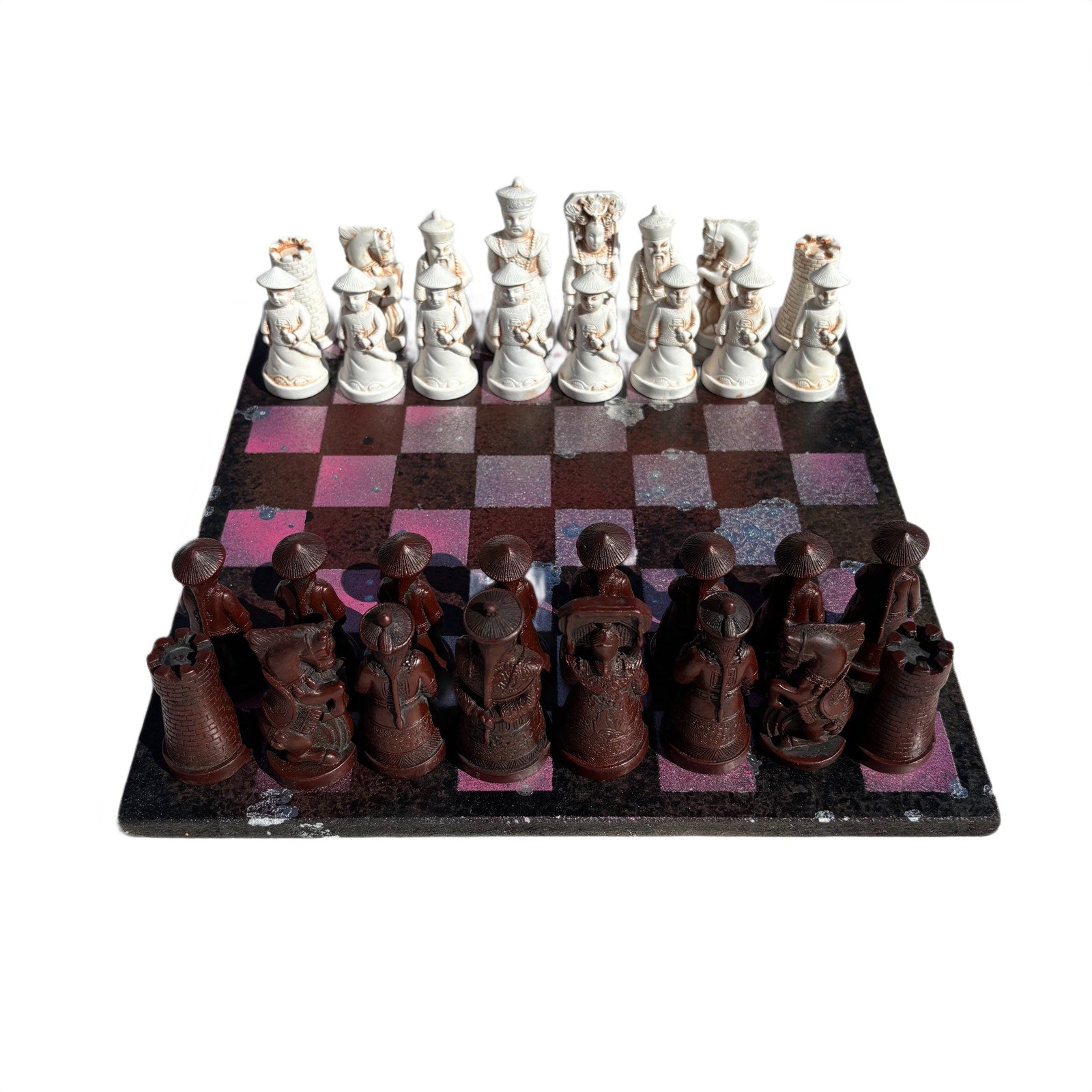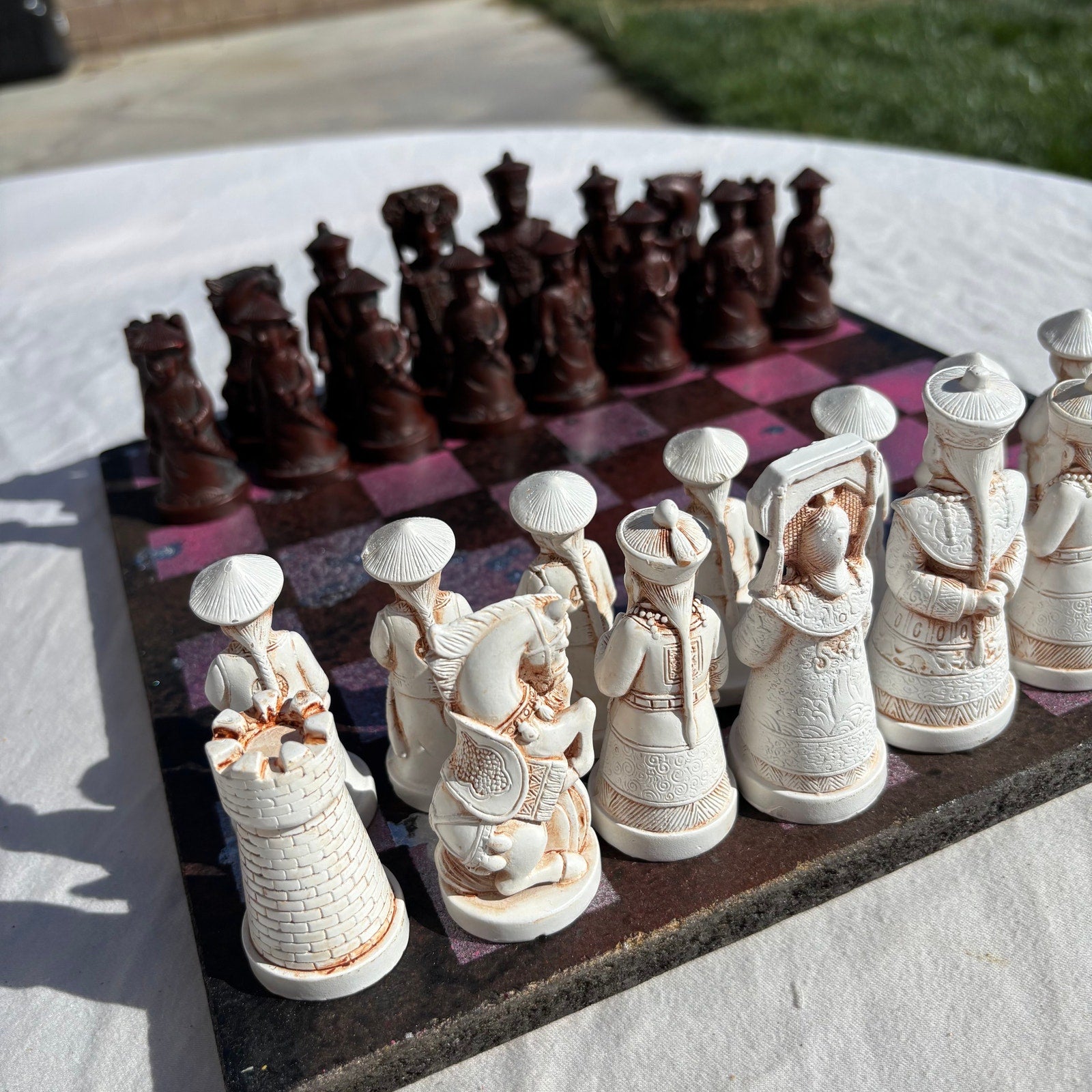 This set is not just a game; it's a work of art, perfect for collectors and chess enthusiasts alike. The attention to detail and craftsmanship makes it a standout piece. Whether you're looking for a beautiful display item or a functional chess set for play, this hand-painted creation is sure to impress. The unique design and quality materials make it a valuable addition to any collection.