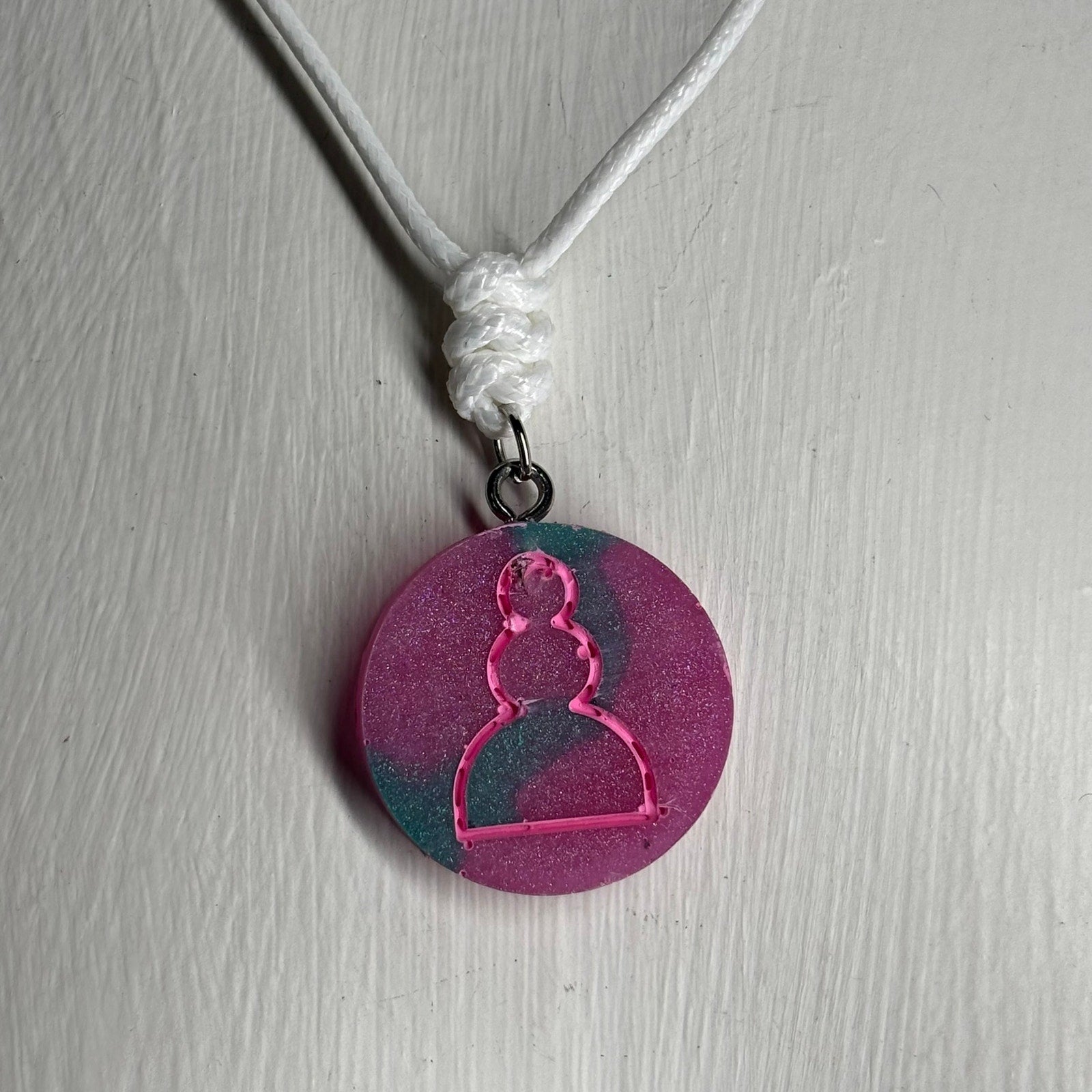 Pink Swirl Pawn - Handmade Resin Chess Necklace