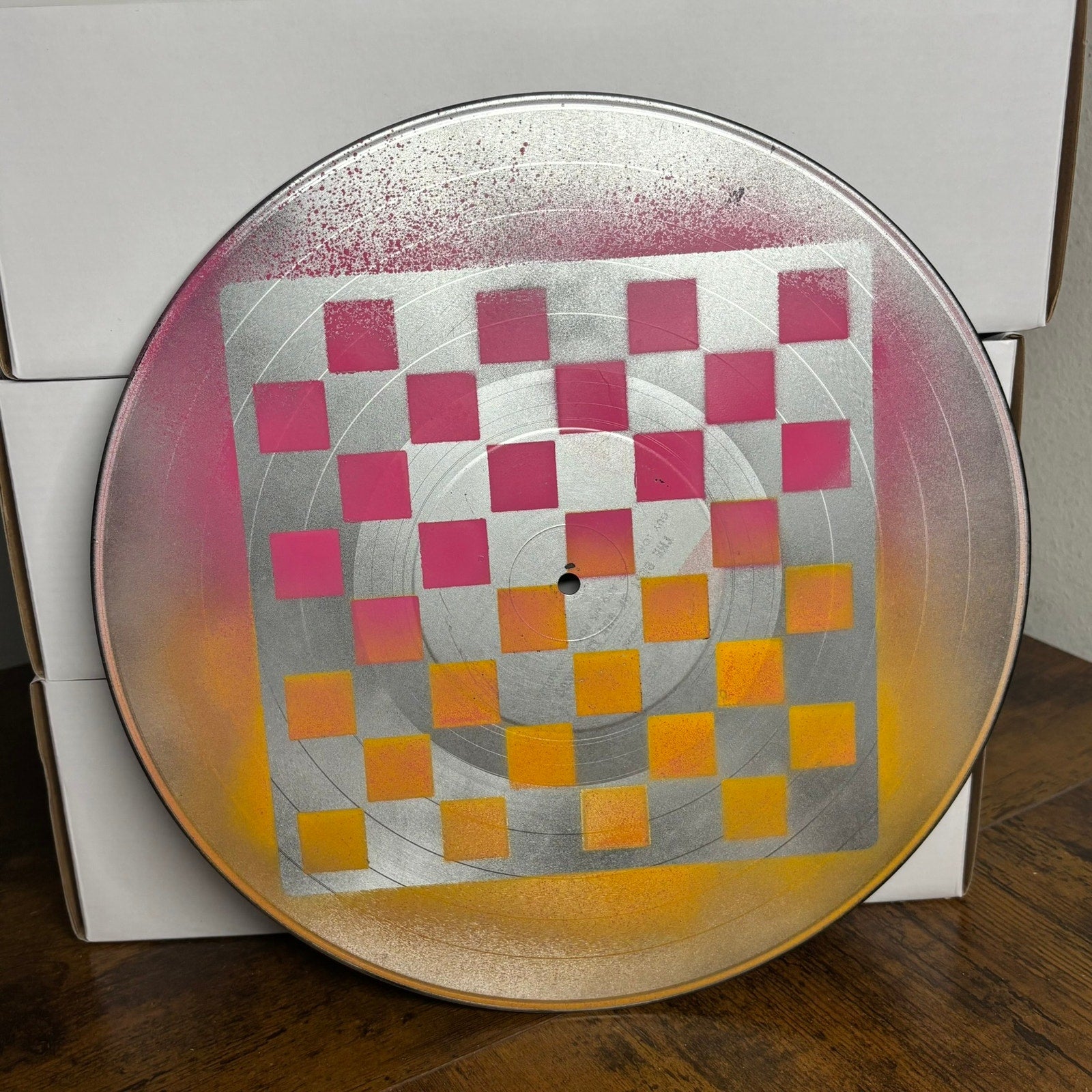 Add a unique and artistic touch to your game nights with these hand-painted vinyl record chess boards! Each board is a one-of-a-kind creation, featuring its own distinct color palette and design.