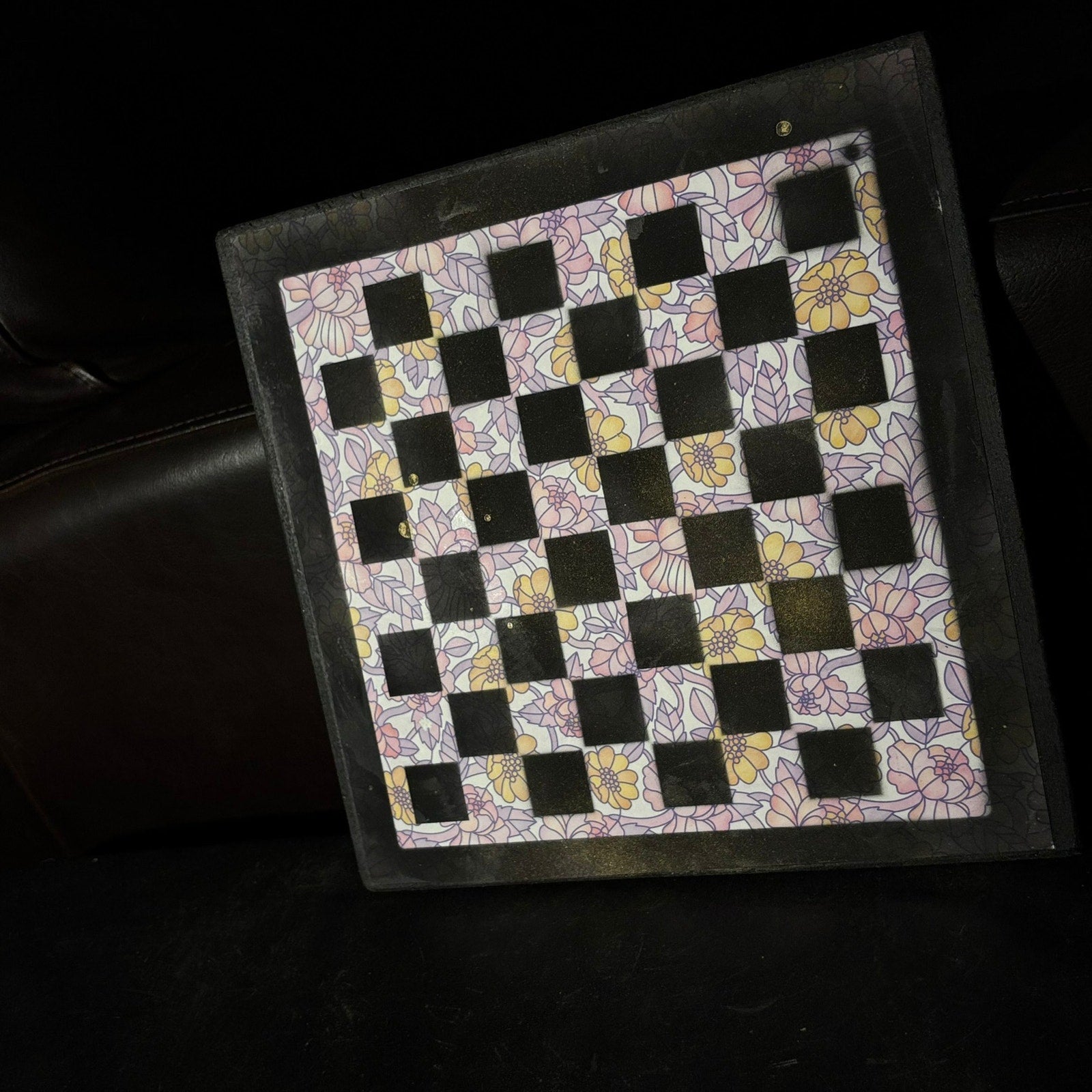 Each board features a layer of beautifully Scrapbook Paper Fused/Glued with particle board to give it a unique pretty pattern. We then paint squares onto the board to make them into fabulous chess boards. Made with a sturdy particle board base and smooth, beveled edges, this board is stunning.