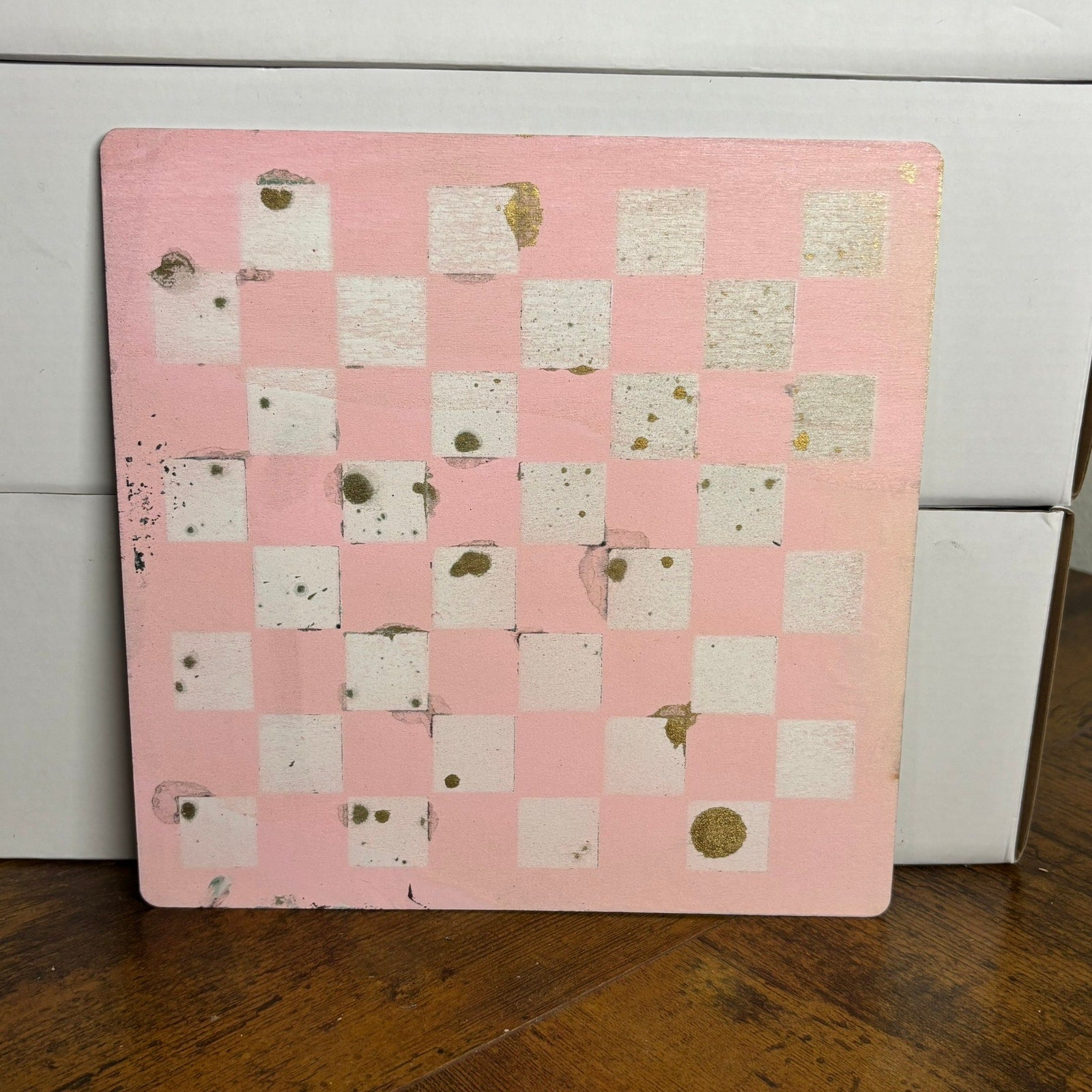 Pinked Golden Drip - Painted Thin Wooden Chess Board