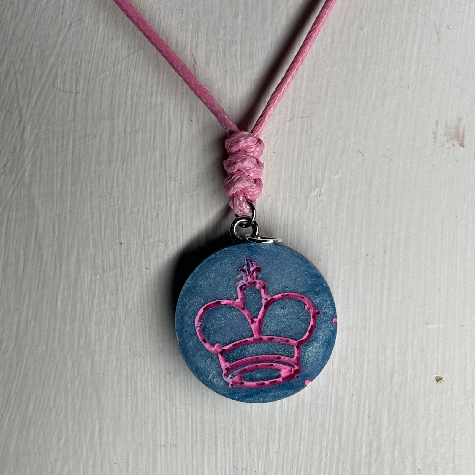 Pretty Blue Pink Queen - Handmade Resin Chess Necklace