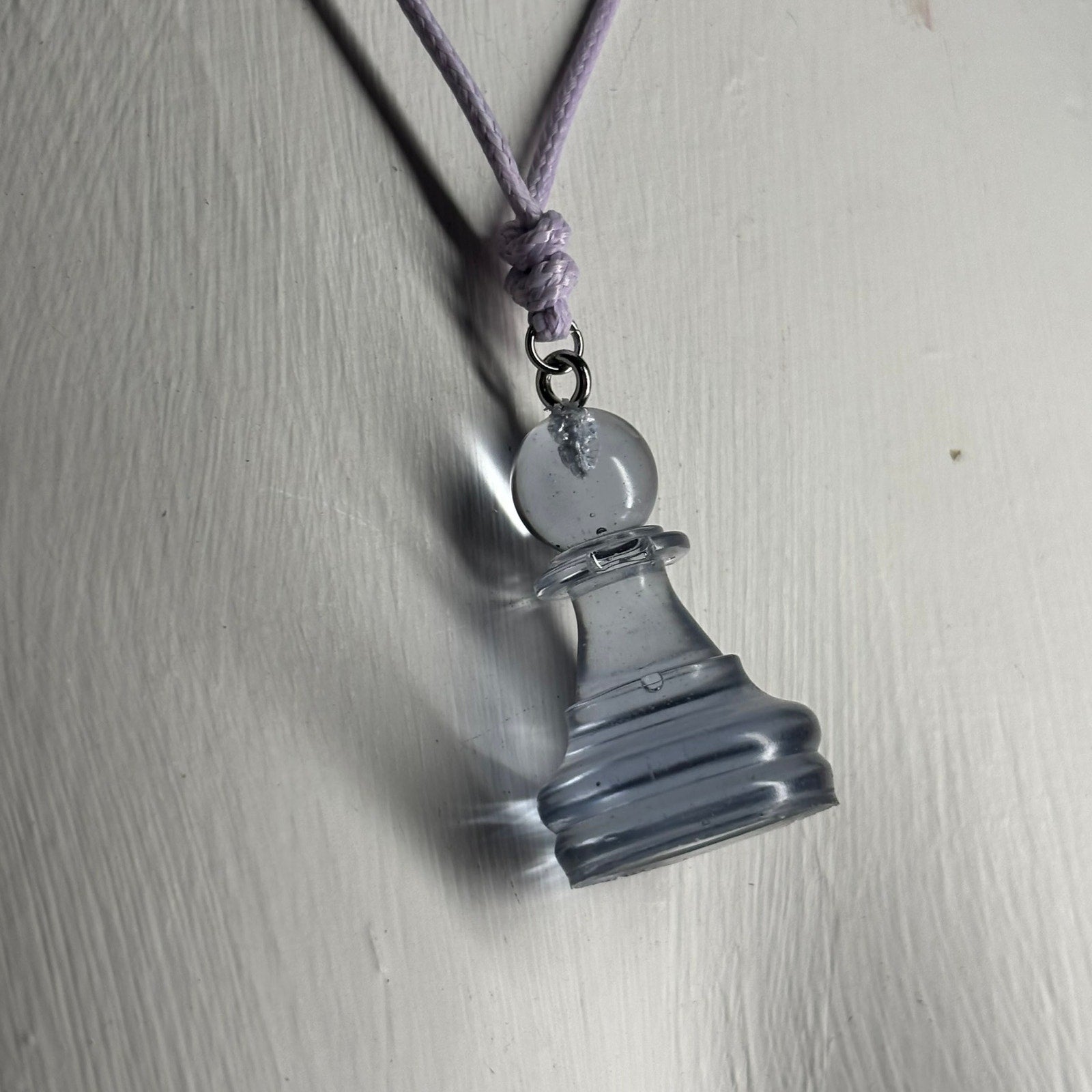 Add a touch of strategy and style to your look with this unique, handcrafted chess pendant necklace! Each necklace features a resin chess piece pendant, lovingly handmade to ensure quality and individuality.