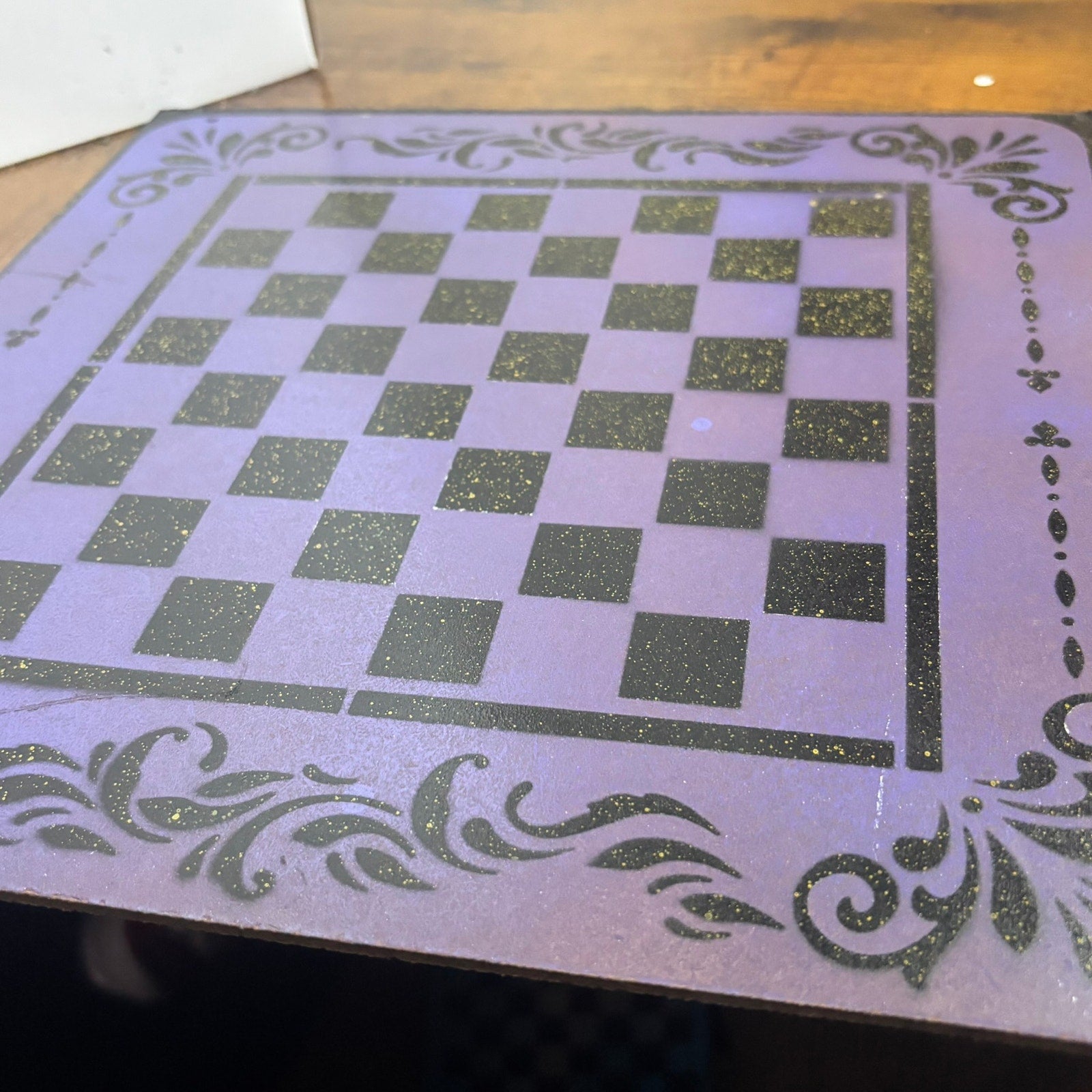 Each board features a beautifully Painted Hardboard with a unique pretty pattern. We then paint squares onto the board to make them into fabulous chess boards.
