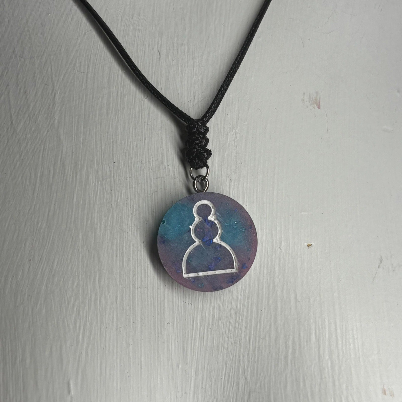 Purple Blue Pawn - Handmade Resin Chess Necklace