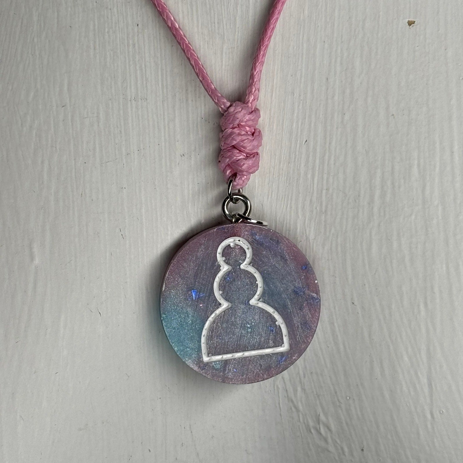 Purple & Blue Pawn - Handmade Resin Chess Necklace