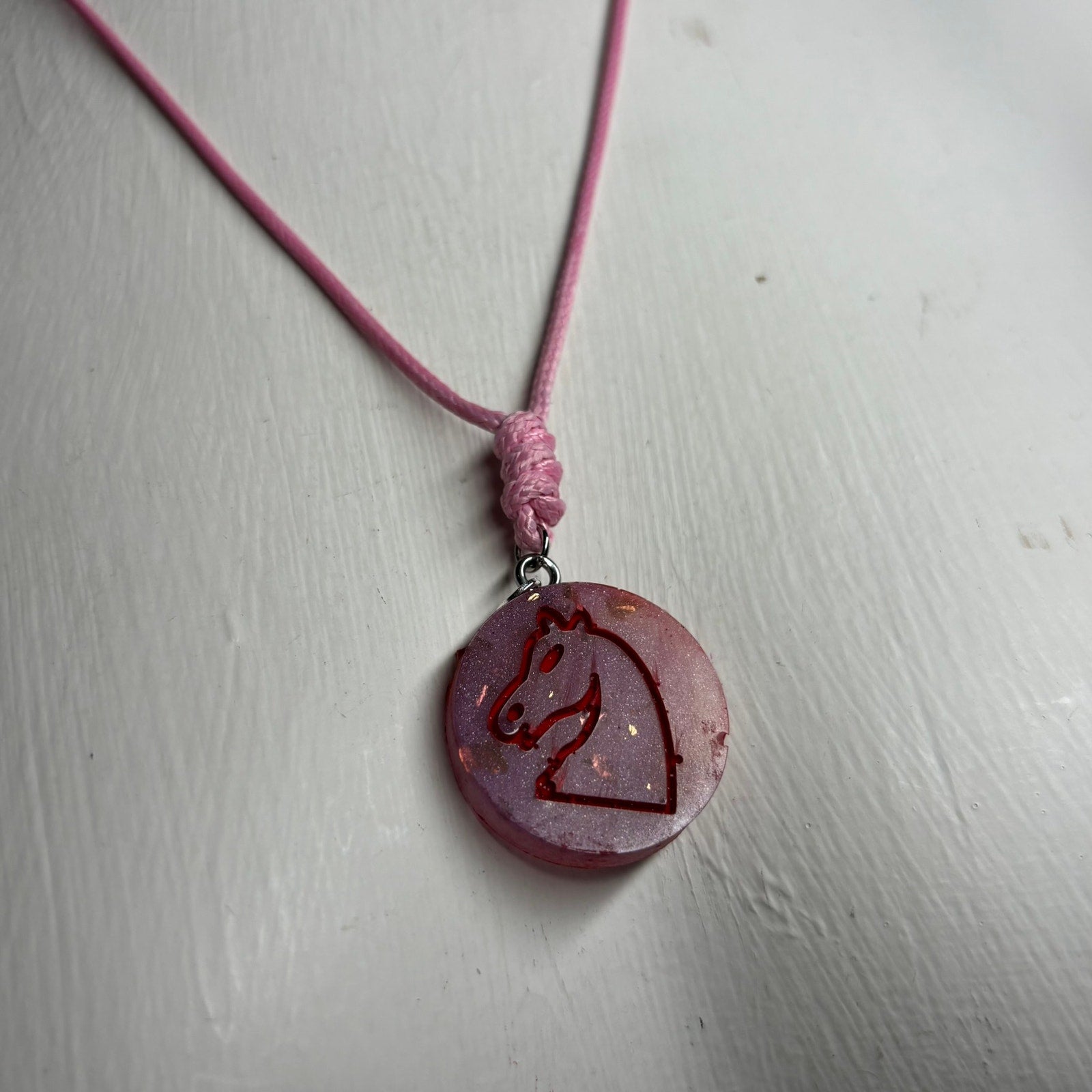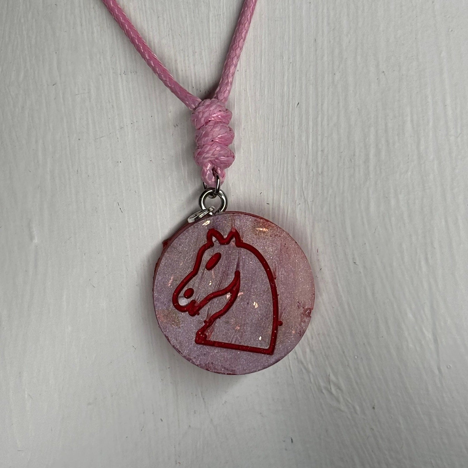 Purple Chrome Knight - Handmade Resin Chess Necklace