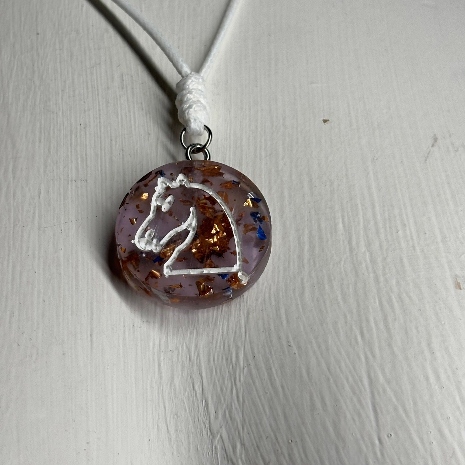 Purple Crystal Knight - Handmade Resin Chess Necklace