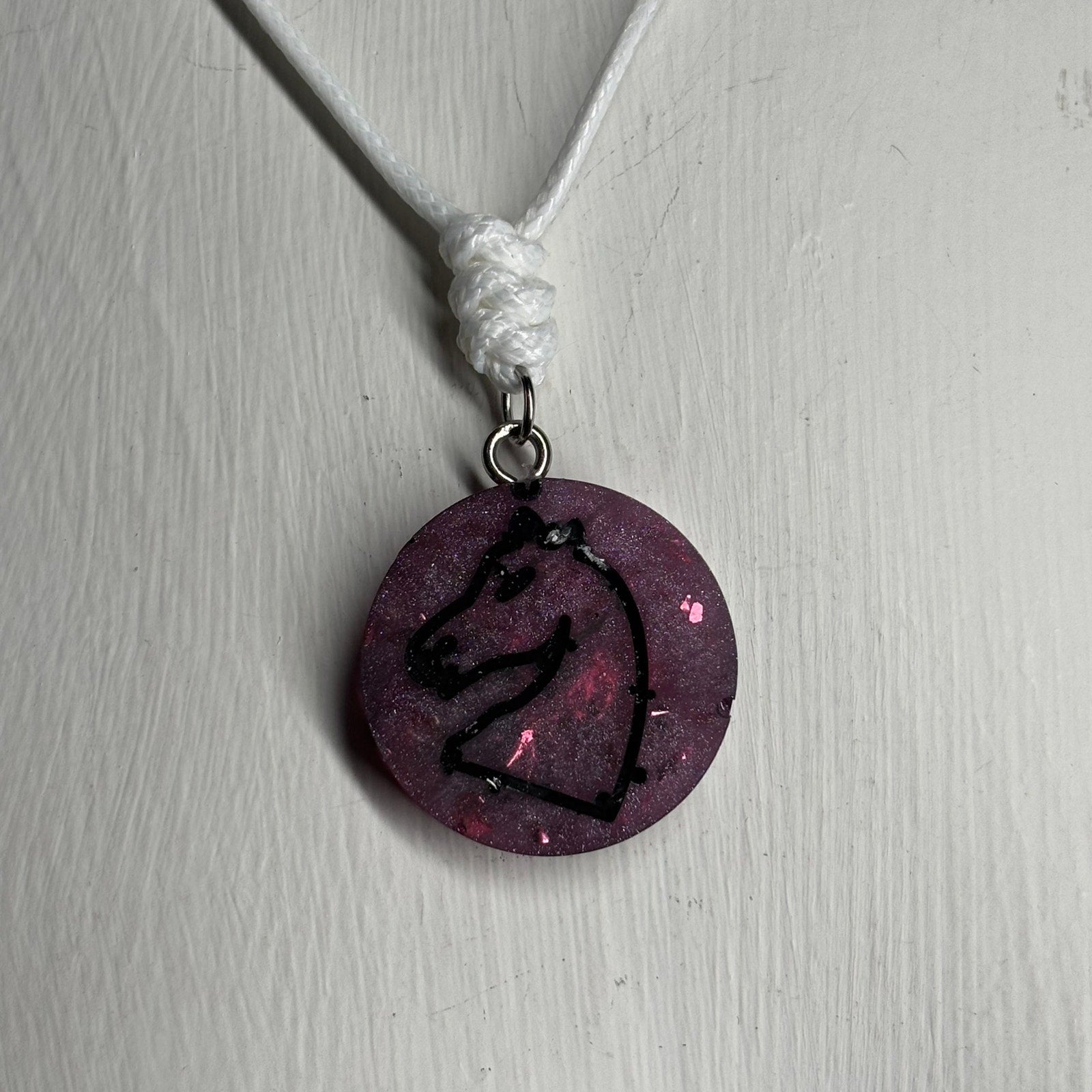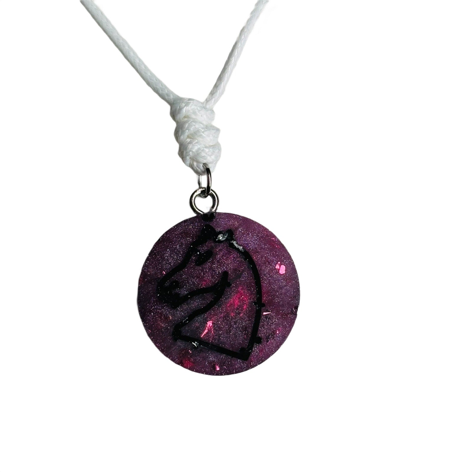 Purple Crystal Knight - Handmade Resin Chess Necklace