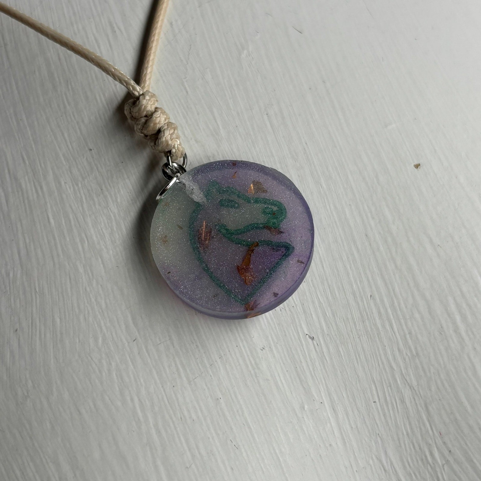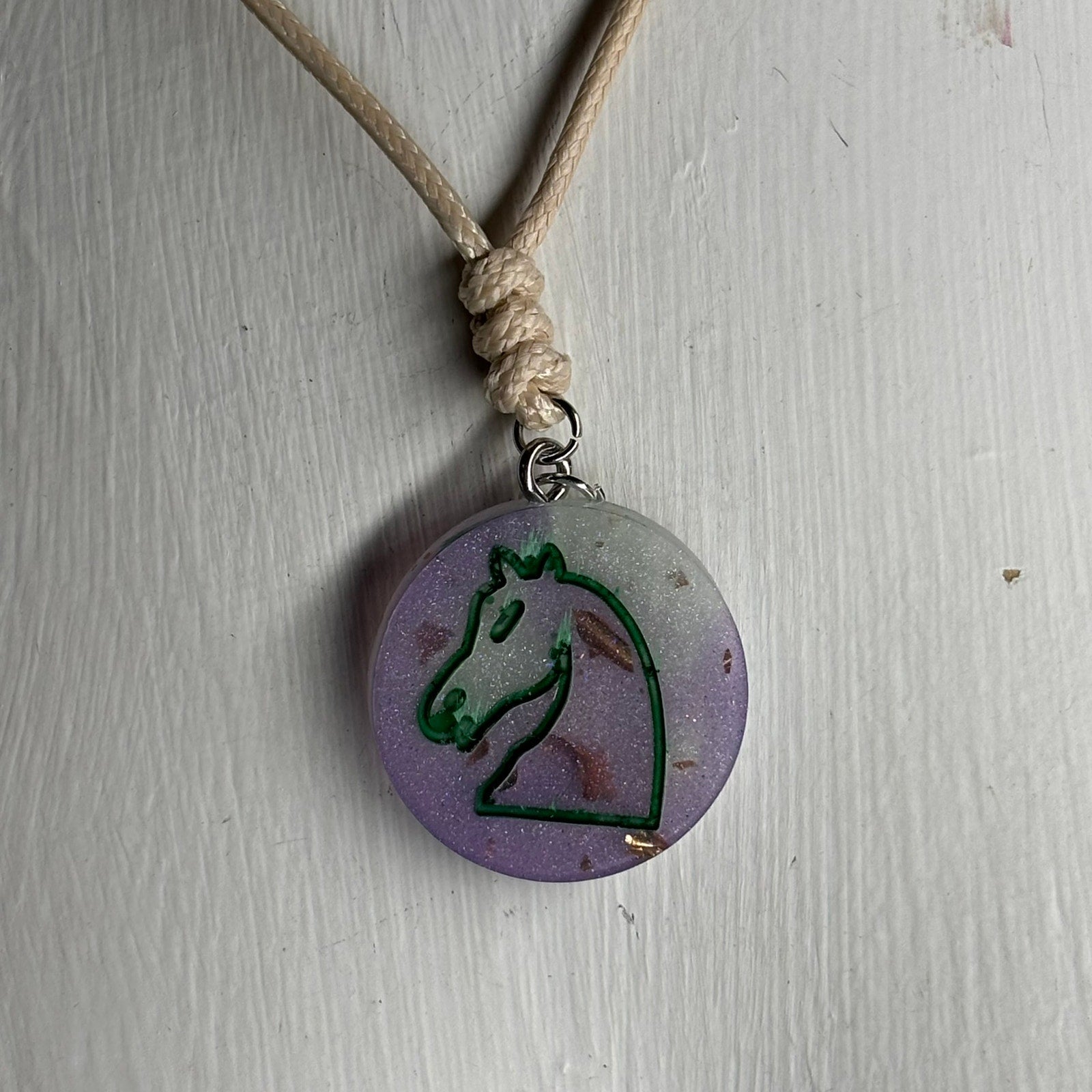 Purple Crystal Knight - Handmade Resin Chess Necklace