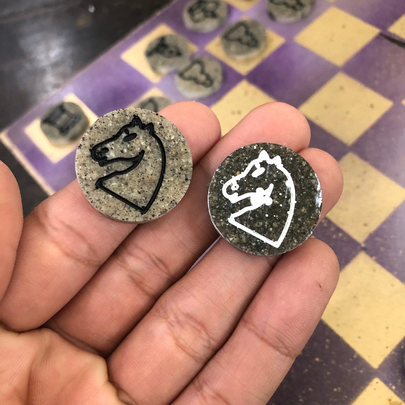 Introducing our exclusive Handcrafted Hardboard Chess Set, meticulously designed with precision and care. Measuring 12 inches by 12 inches, this chess set features a beautifully painted hardwood board that doubles as a work of art. Each set is a unique, one-of-a-kind creation, crafted by hand to ensure that no two sets are alike. Elevate your gaming experience with this exceptional chess set that combines vibrant design with the touch of artisan craftsmanship.