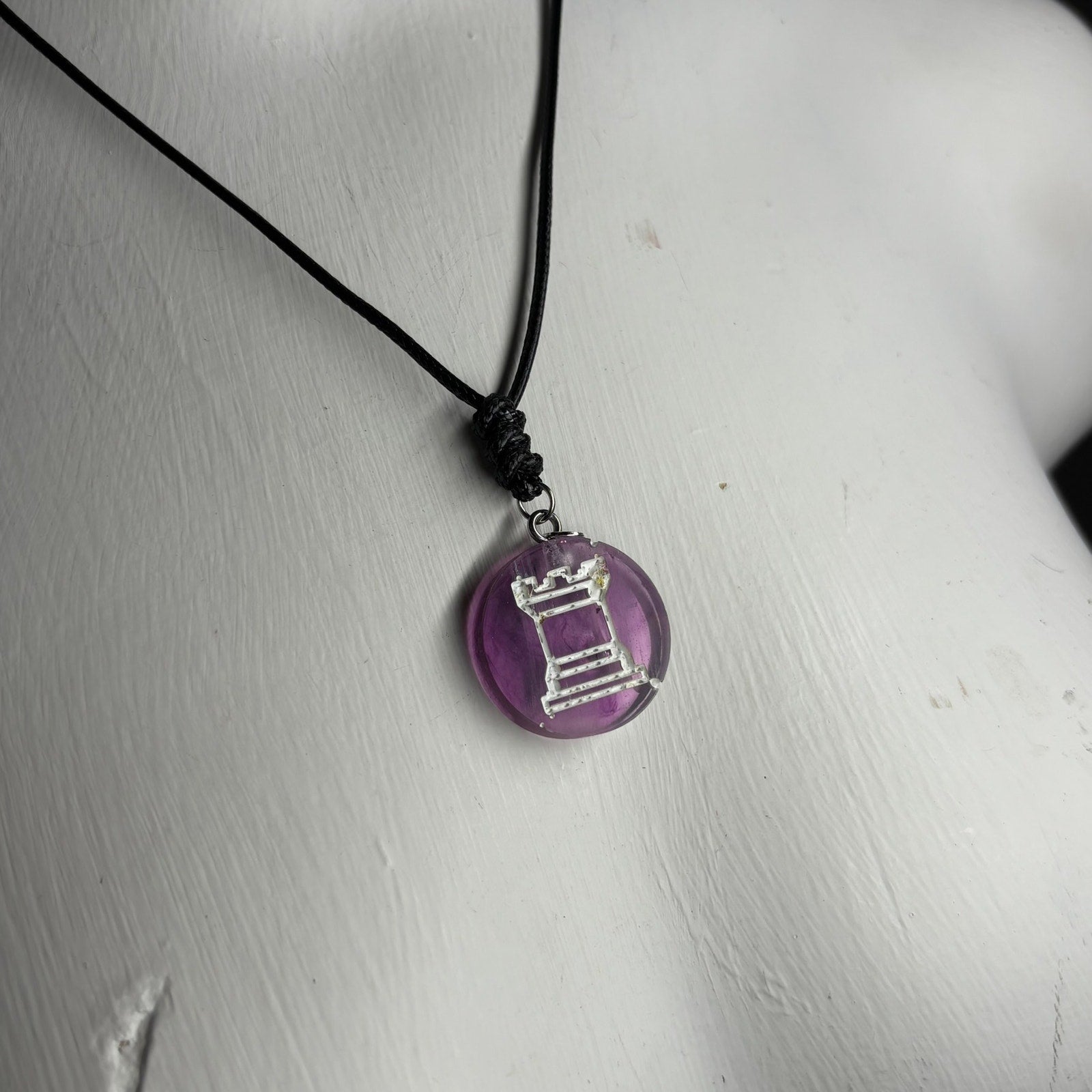 Purple Mist Rook - Handmade Resin Chess Necklace