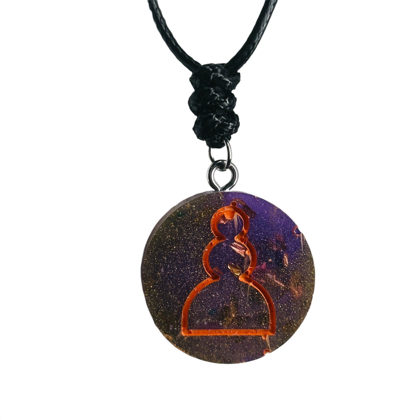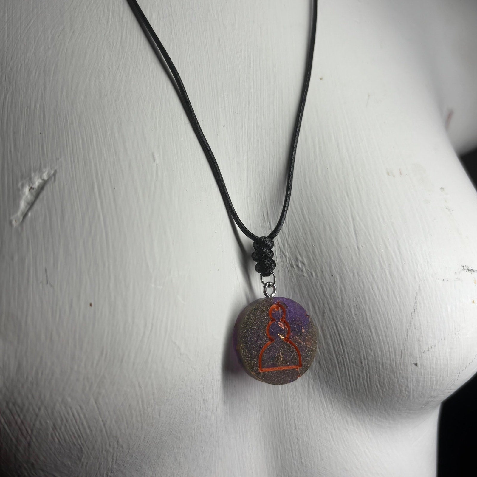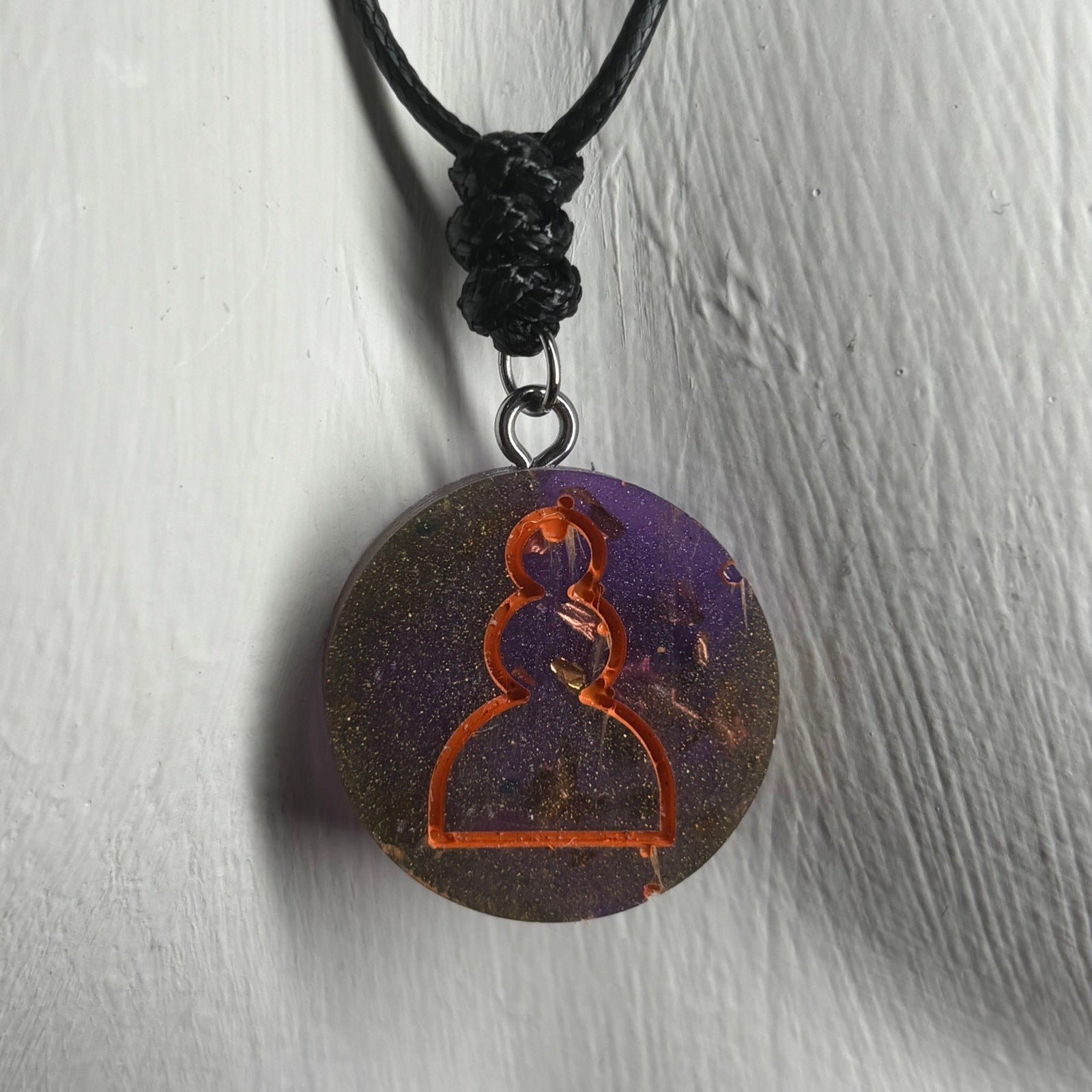 Purple/Orange Pawn - Handmade Resin Chess Necklace