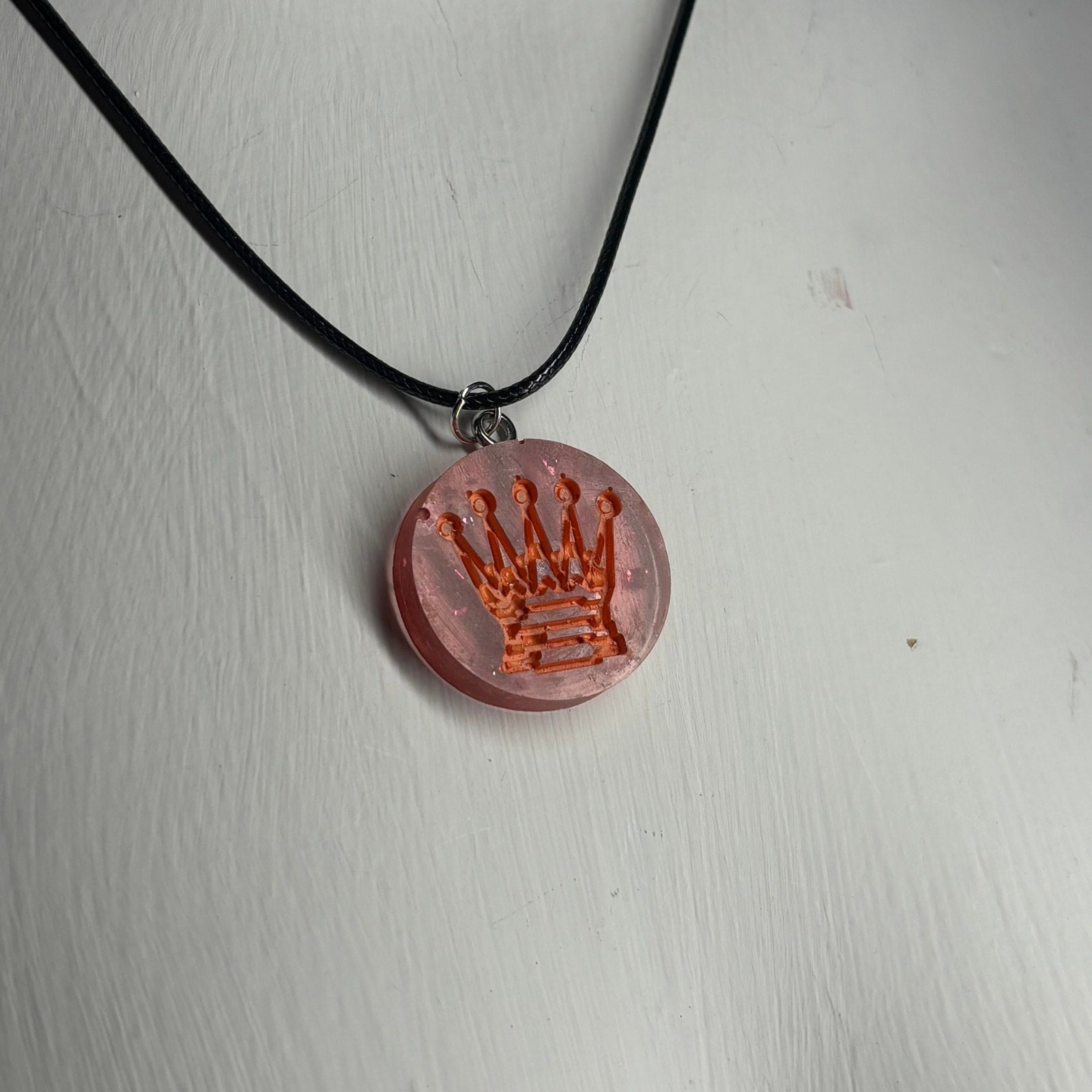 Purple/Orange Queen - Handmade Resin Chess Necklace