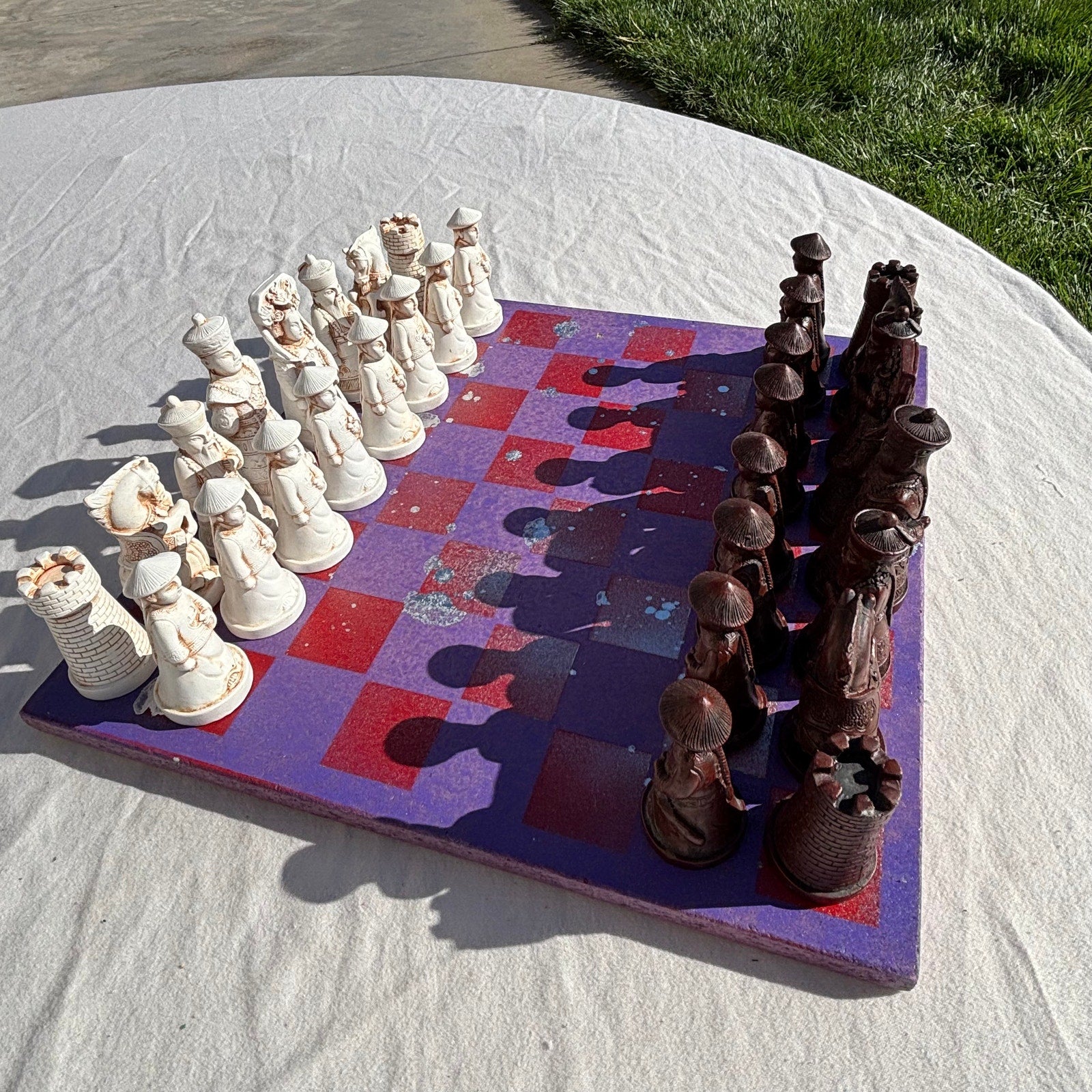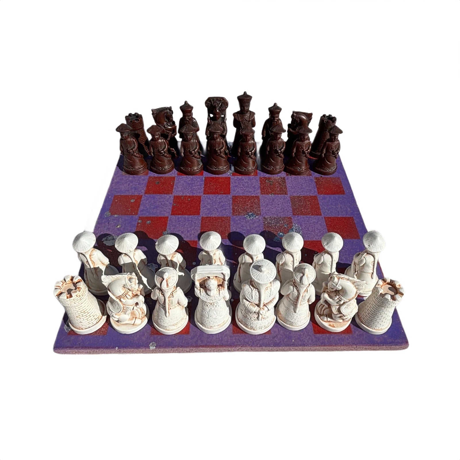This set is not just a game; it's a work of art, perfect for collectors and chess enthusiasts alike. The attention to detail and craftsmanship makes it a standout piece. Whether you're looking for a beautiful display item or a functional chess set for play, this hand-painted creation is sure to impress. The unique design and quality materials make it a valuable addition to any collection.