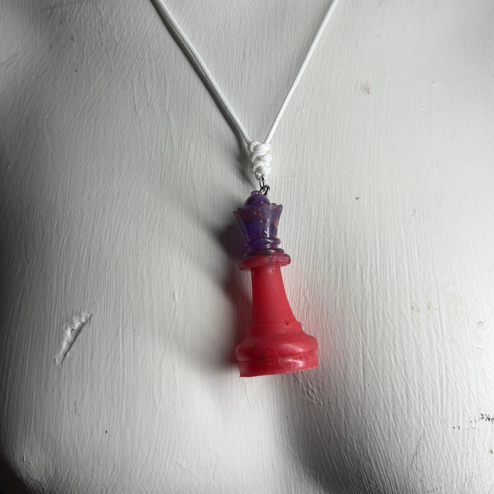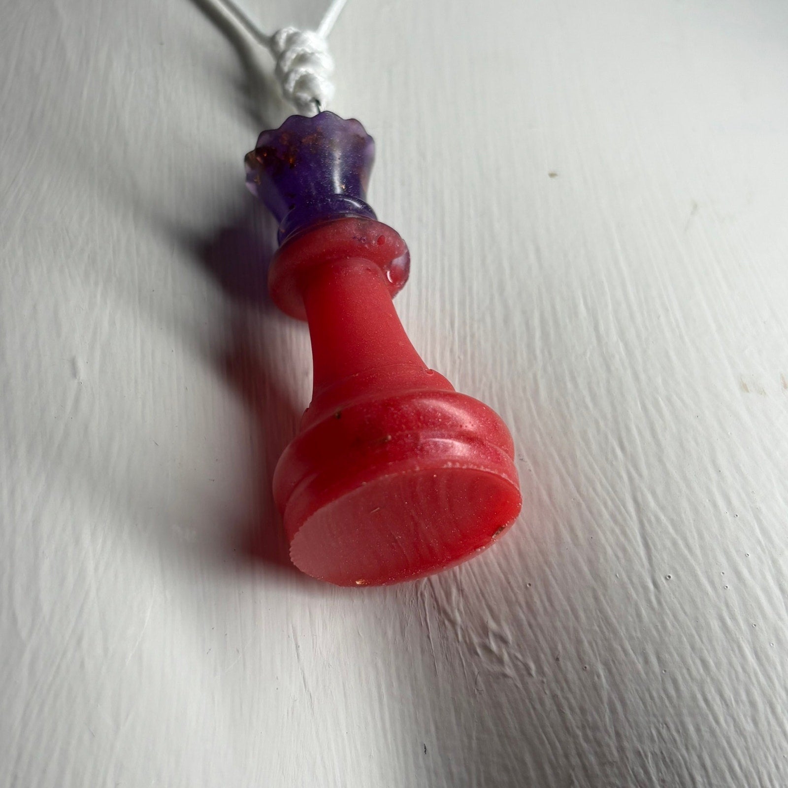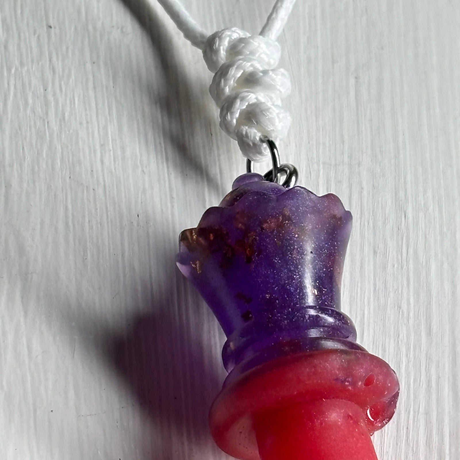 Purple & Red Queen - Handmade Resin Chess Necklace