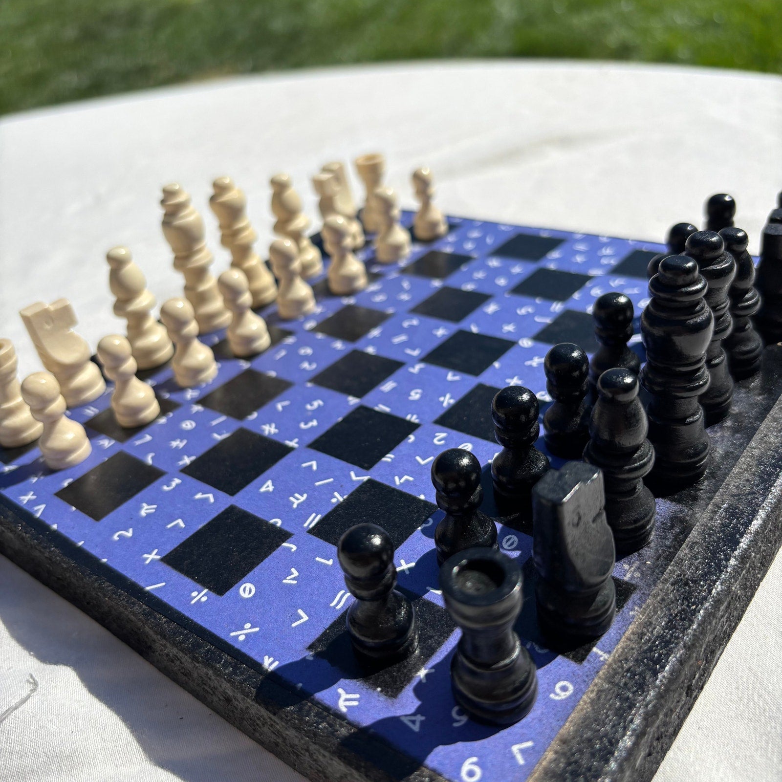 Introducing our exclusive Handcrafted Wooden Chess Set, meticulously designed with precision and care. Measuring 8 inches by 8 inches, this chess set features a beautifully painted particle board layered with a sheet of scrapbook paper board that doubles as a work of art. Each set is a unique, one-of-a-kind creation, crafted by hand to ensure that no two sets are alike. Elevate your gaming experience with this exceptional chess set that combines vibrant design with the touch of artisan craftsmanship. This chess board comes with chess pieces and is handcrafted as a one of one
