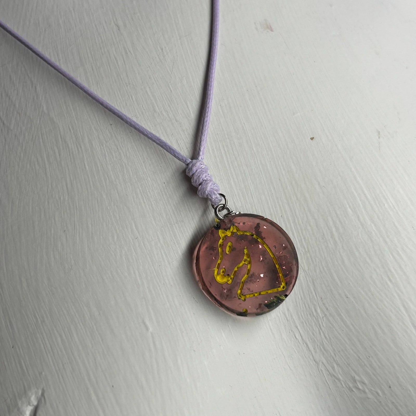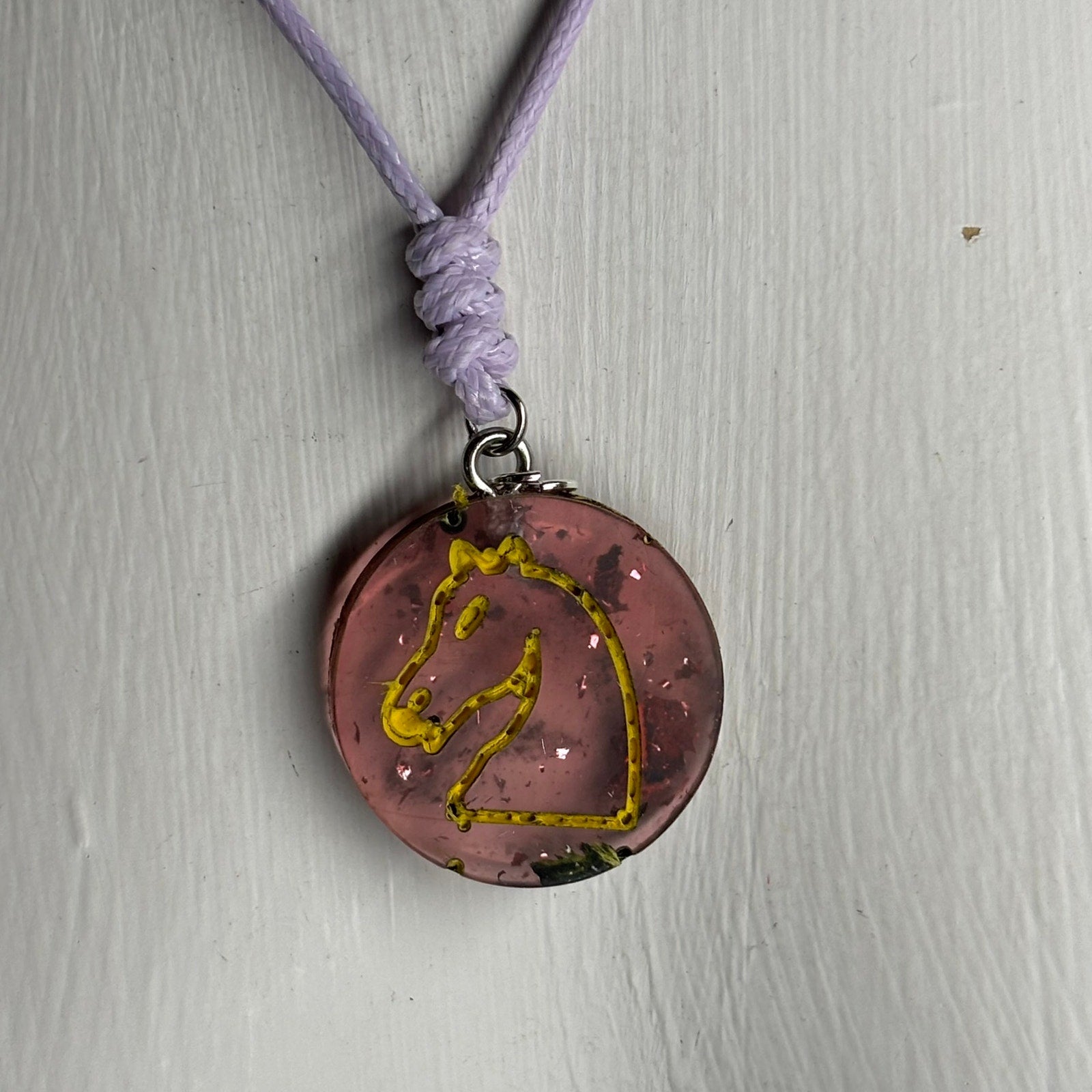 Purple Translucent Knight - Handmade Resin Chess Necklace