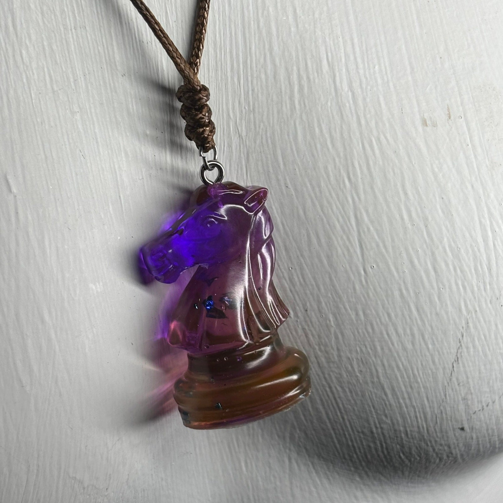 Purple Translucent Knight - Handmade Resin Chess Necklace