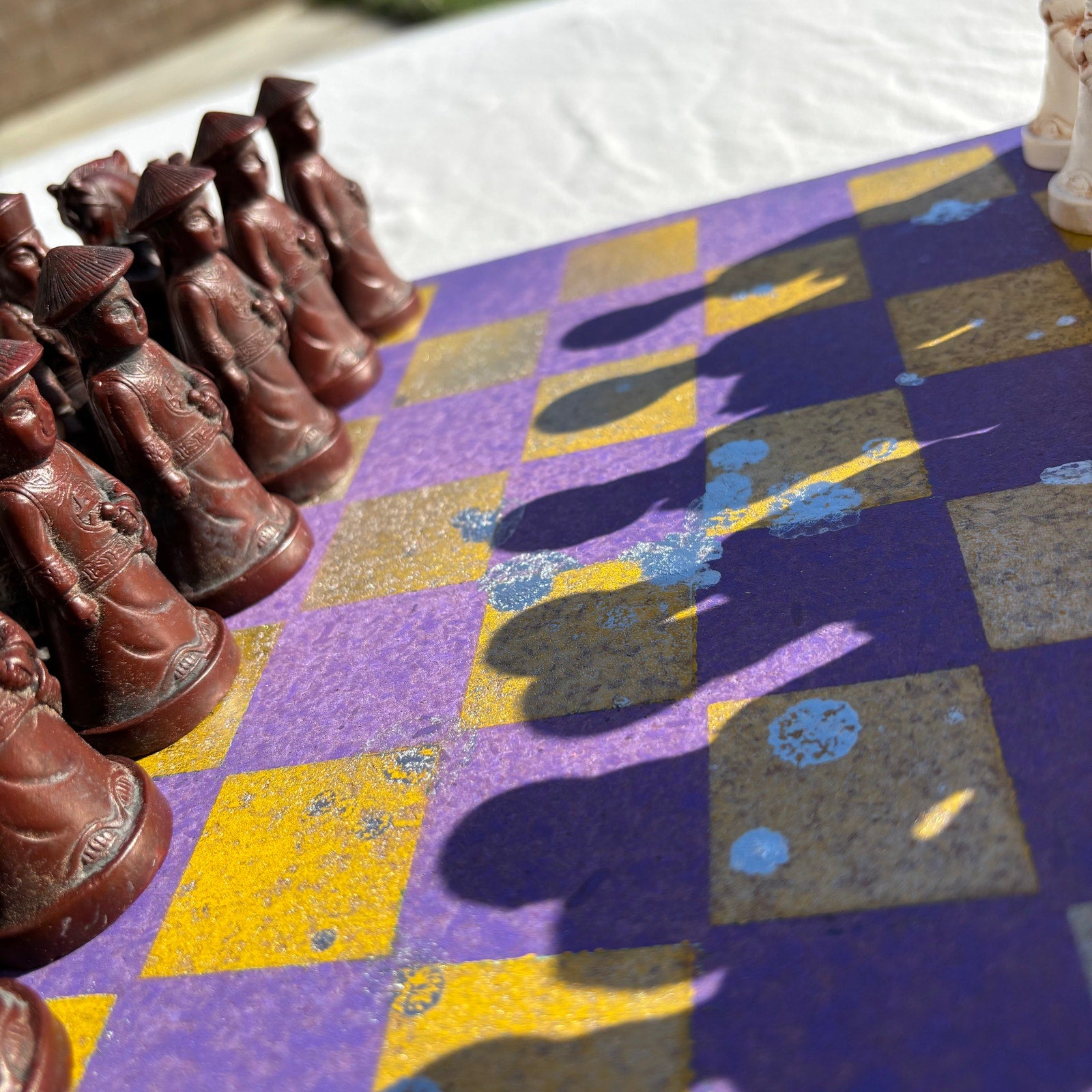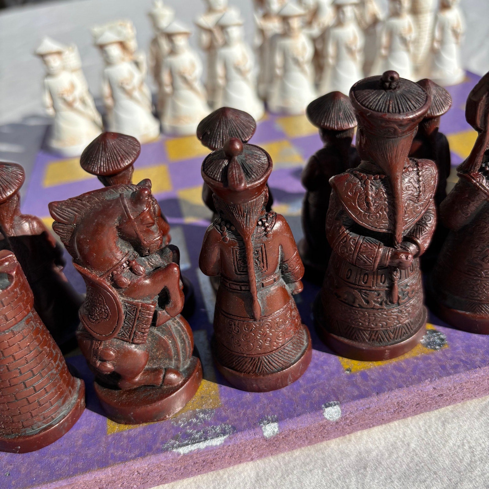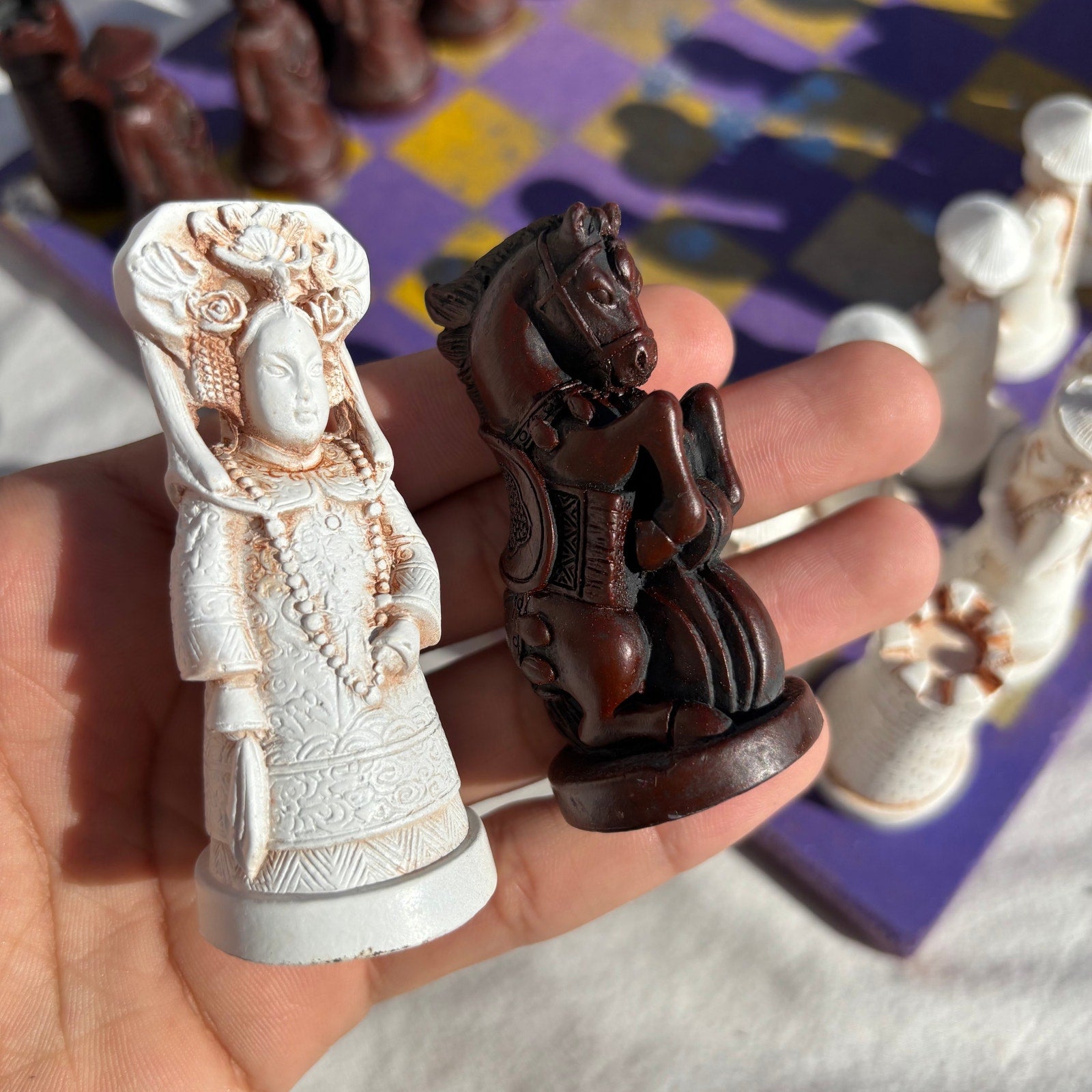 This set is not just a game; it's a work of art, perfect for collectors and chess enthusiasts alike. The attention to detail and craftsmanship makes it a standout piece. Whether you're looking for a beautiful display item or a functional chess set for play, this hand-painted creation is sure to impress. The unique design and quality materials make it a valuable addition to any collection.