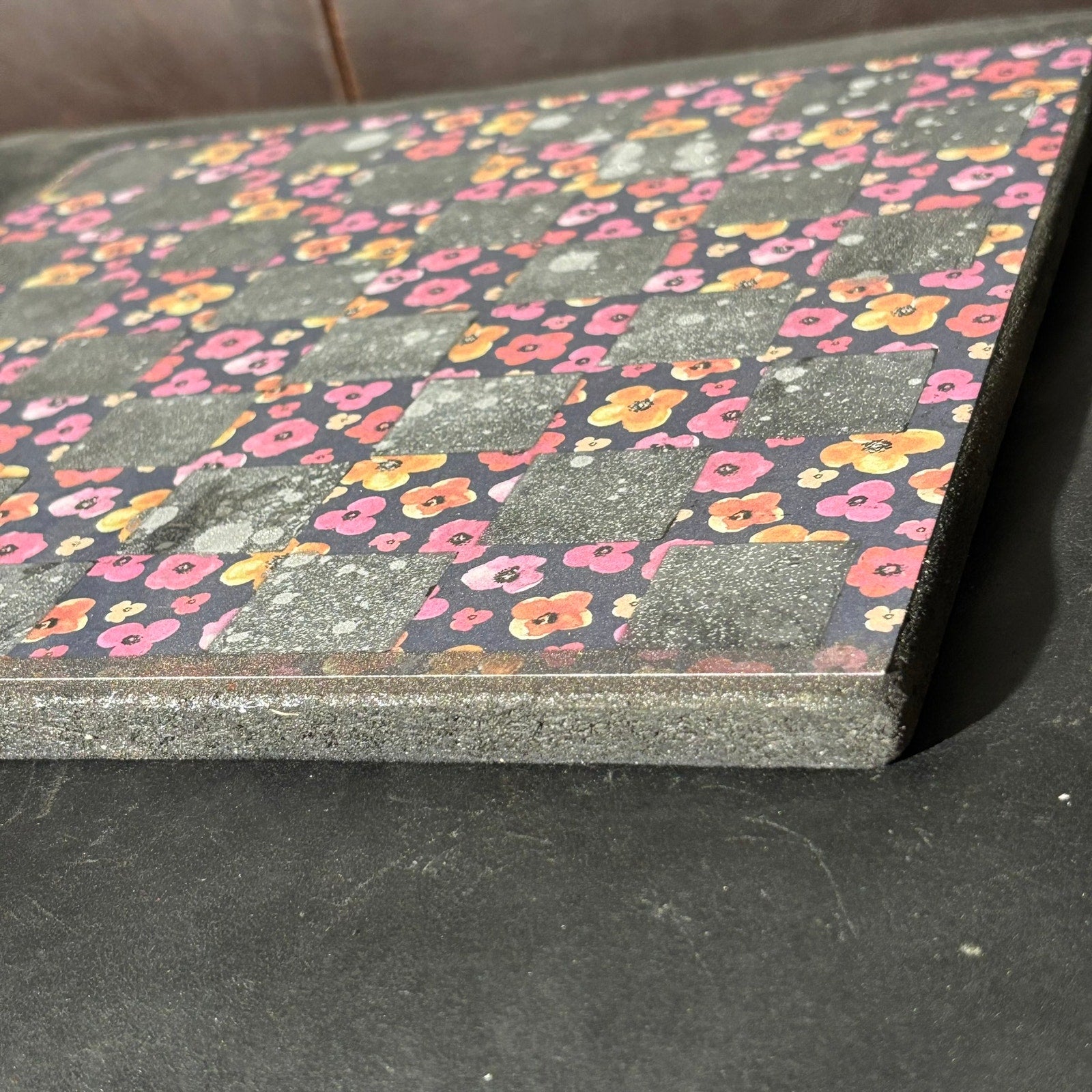 Each board features a layer of beautifully Scrapbook Paper Fused/Glued with particle board to give it a unique pretty pattern. We then paint squares onto the board to make them into fabulous chess boards. Made with a sturdy particle board base and smooth, beveled edges, this board is stunning.