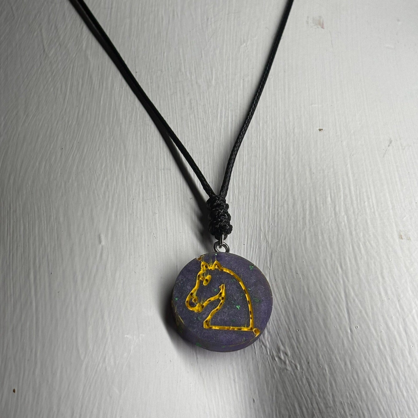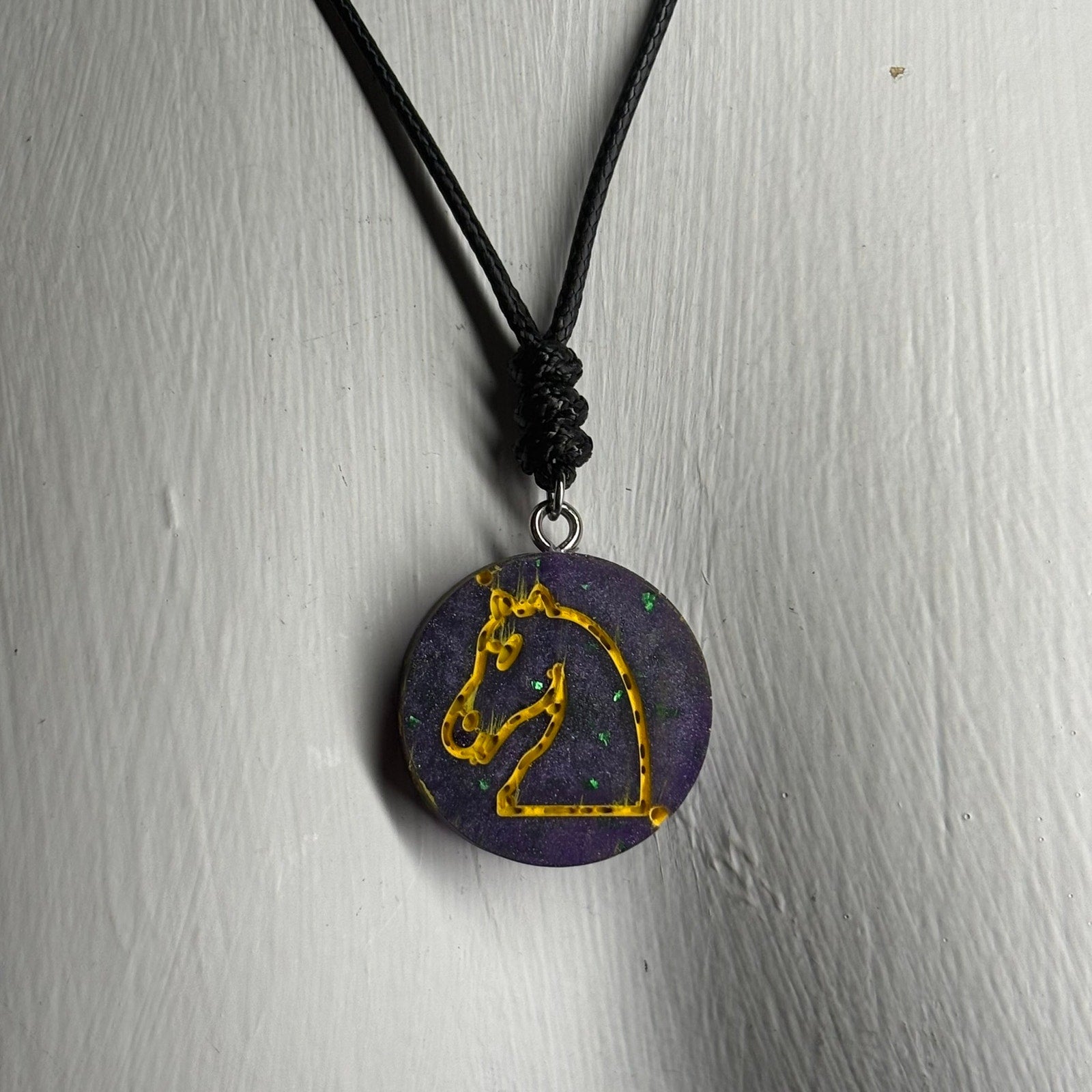 Purple & Yellow Knight - Handmade Resin Chess Necklace