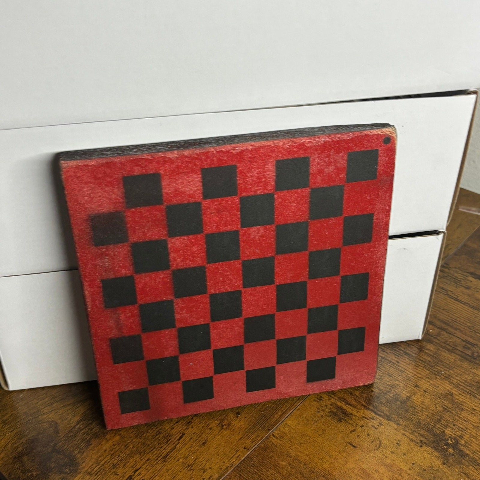 This is a one-of-a-kind, hand-painted chess board that will add a touch of artistry to your game. These are spray painted particle boards and have a double side. One side is painted and the backside is lined with scrapbook paper and has a different design. (The Scrapbook paper part is not meant to be played on but you can!)